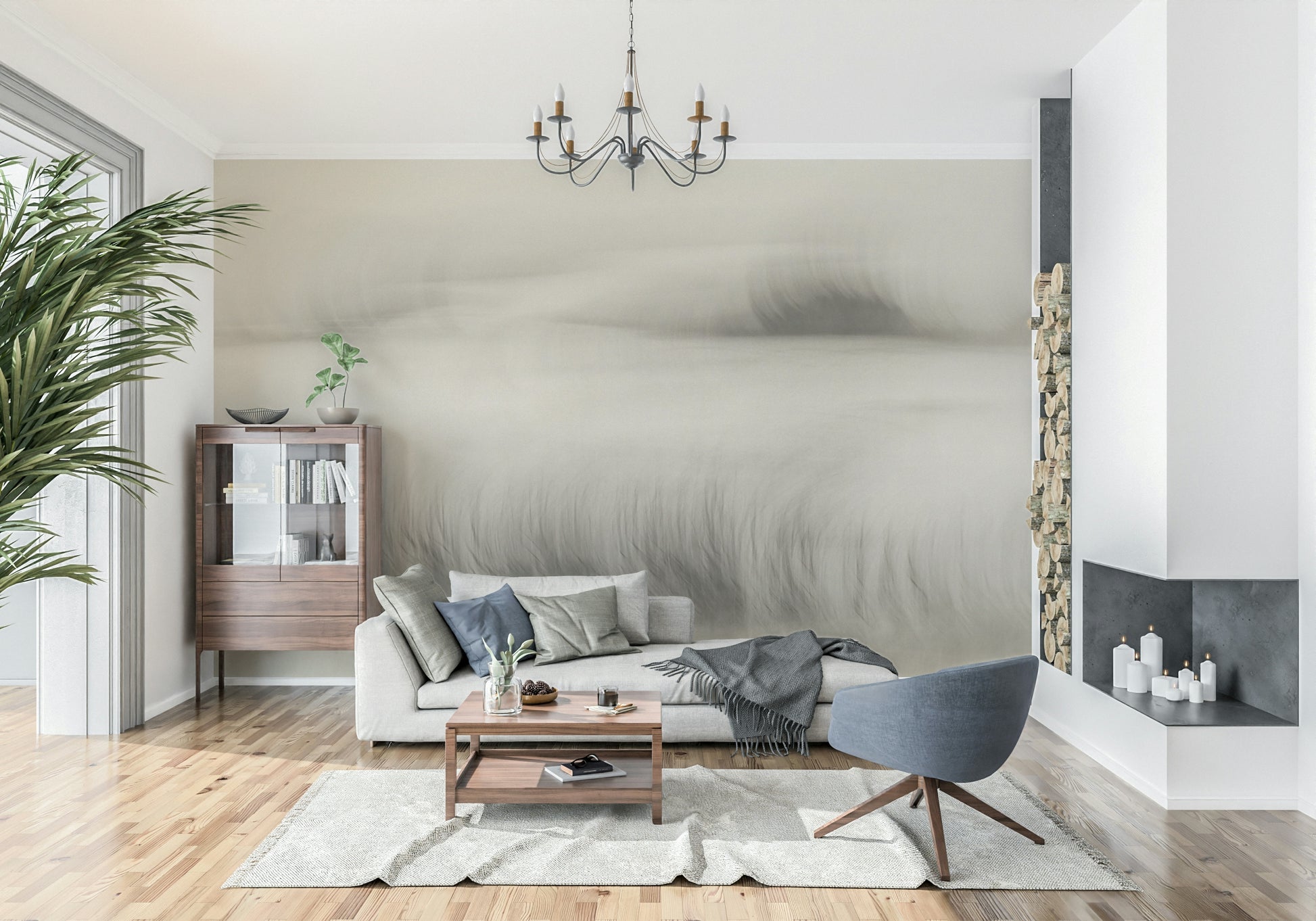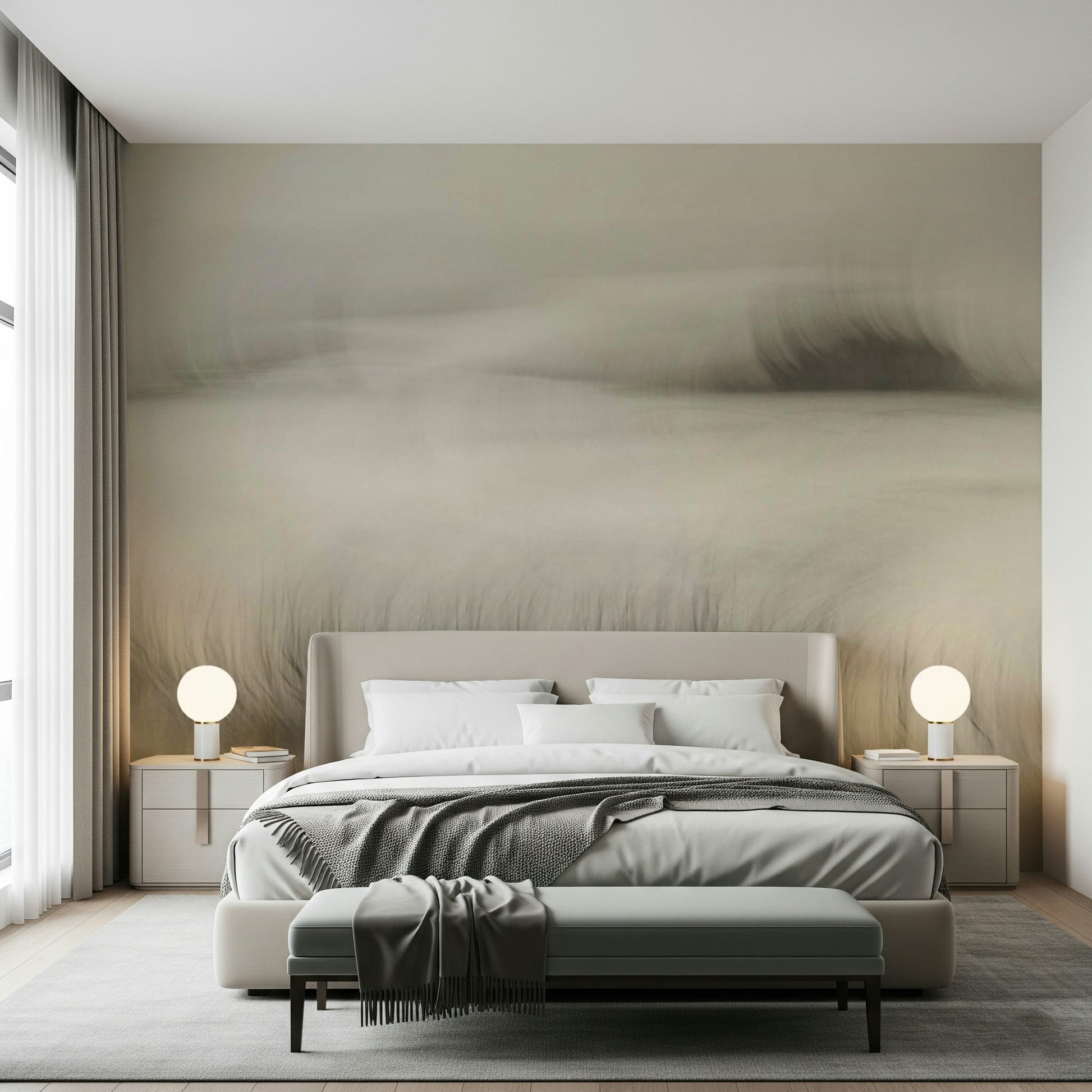 Drift away with this tranquil wallpaper for walls. The subtle movements within the design evoke a sense of calm and peace. Its soft beige and grey tones create a soothing backdrop, perfect for bedrooms or living rooms where relaxation is key. This wallpaper offers a sophisticated, minimalist style, easily enhancing interiors with its elegant simplicity and creating a serene ambiance. Transform your space into a haven of tranquility with this calming design.