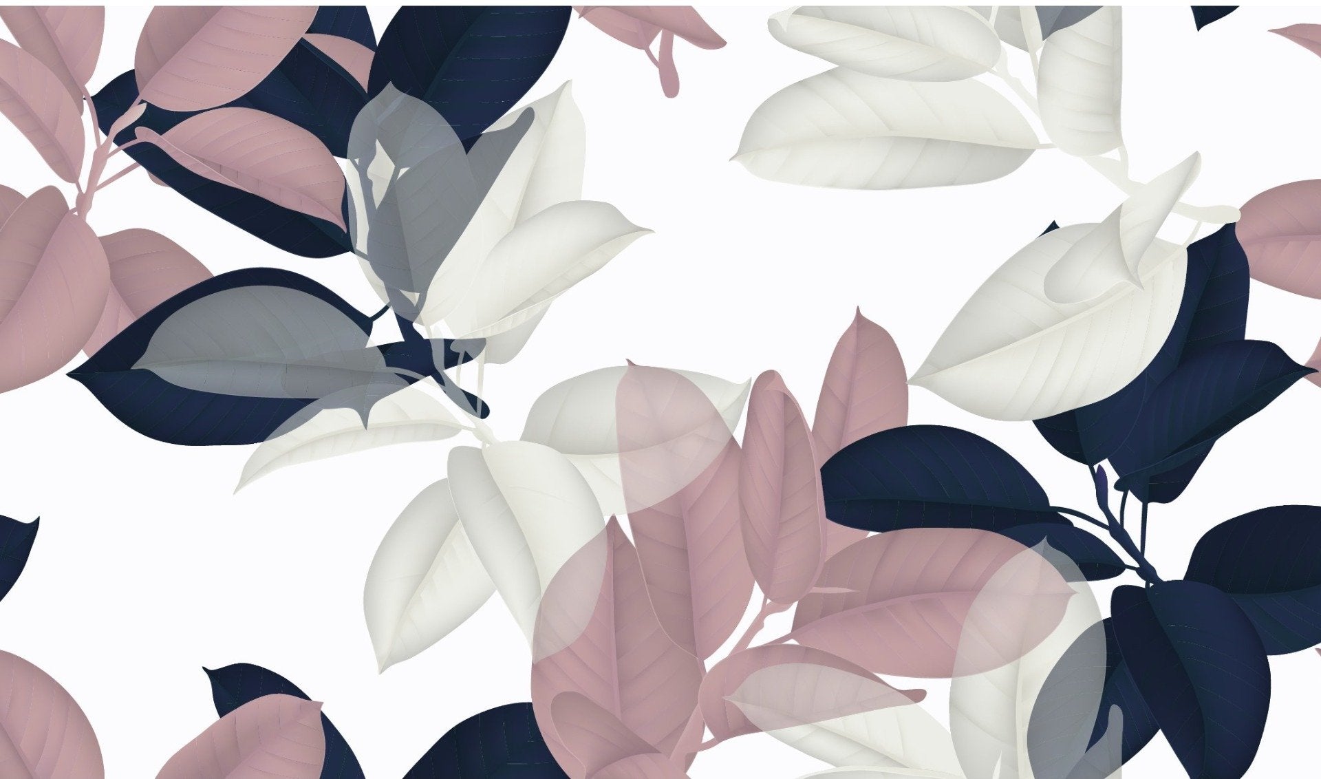Adorn your home with the enchanting charm of our Fabulous Ficus Wallpaper Mural. Celebrated for its broad, shiny leaves, this white-pink leaves mural showcases a striking pattern of blue, pink, and white foliage against a pristine white background. The random spread of the leaves weaves a captivating spell, instantly elevating the ambiance of any room. This mural radiates sophistication and style and is ideal for your living room or dining area. Its unique design, featuring a translucent quality, gives the leaves a lifelike, three-dimensional appearance. Perfectly complementing contemporary furniture, this peel and stick leaves wallpaper mural beautifies your space and adds a touch of nature's tranquility. Embrace elegance and charm with this exquisite addition to your decor.