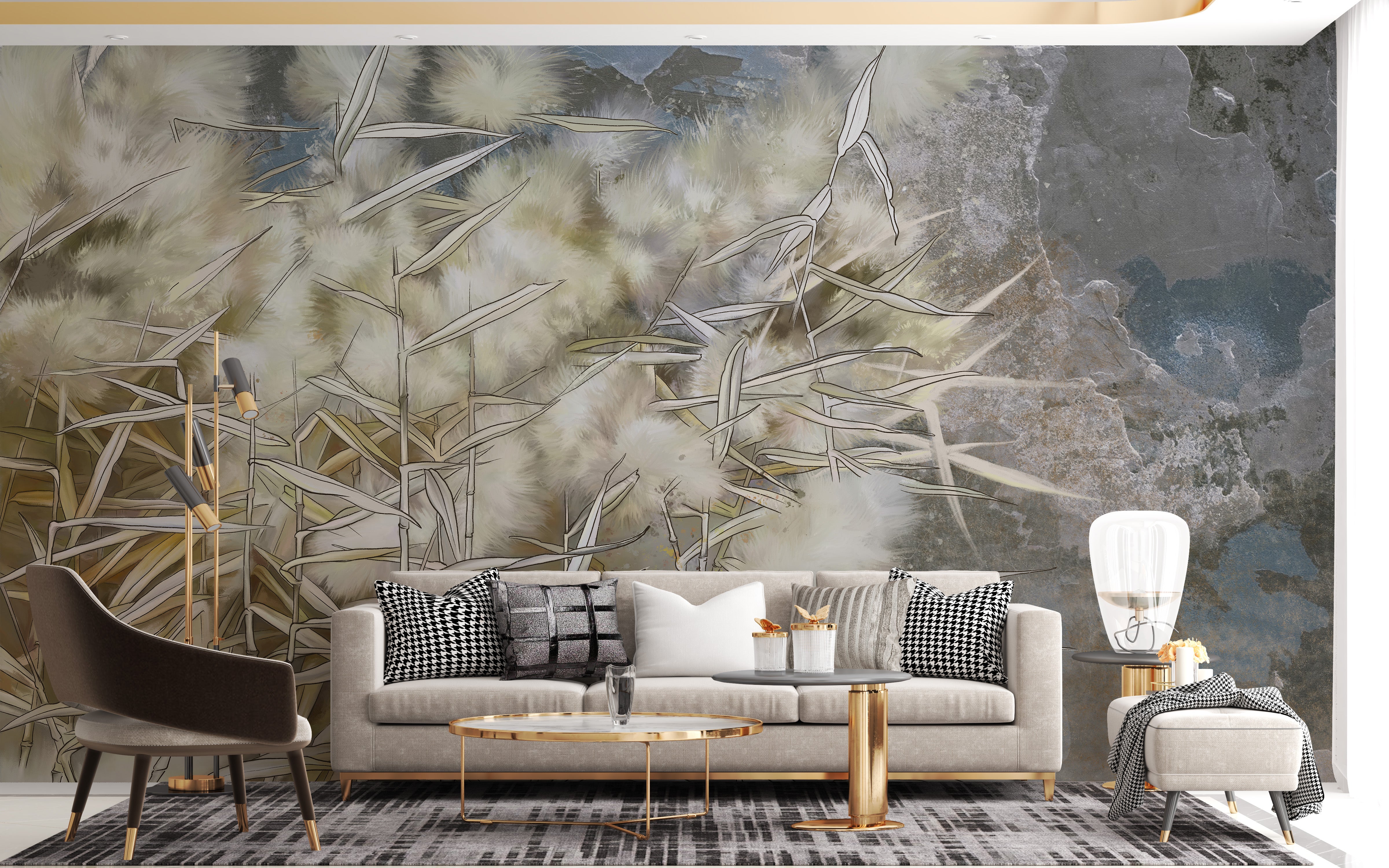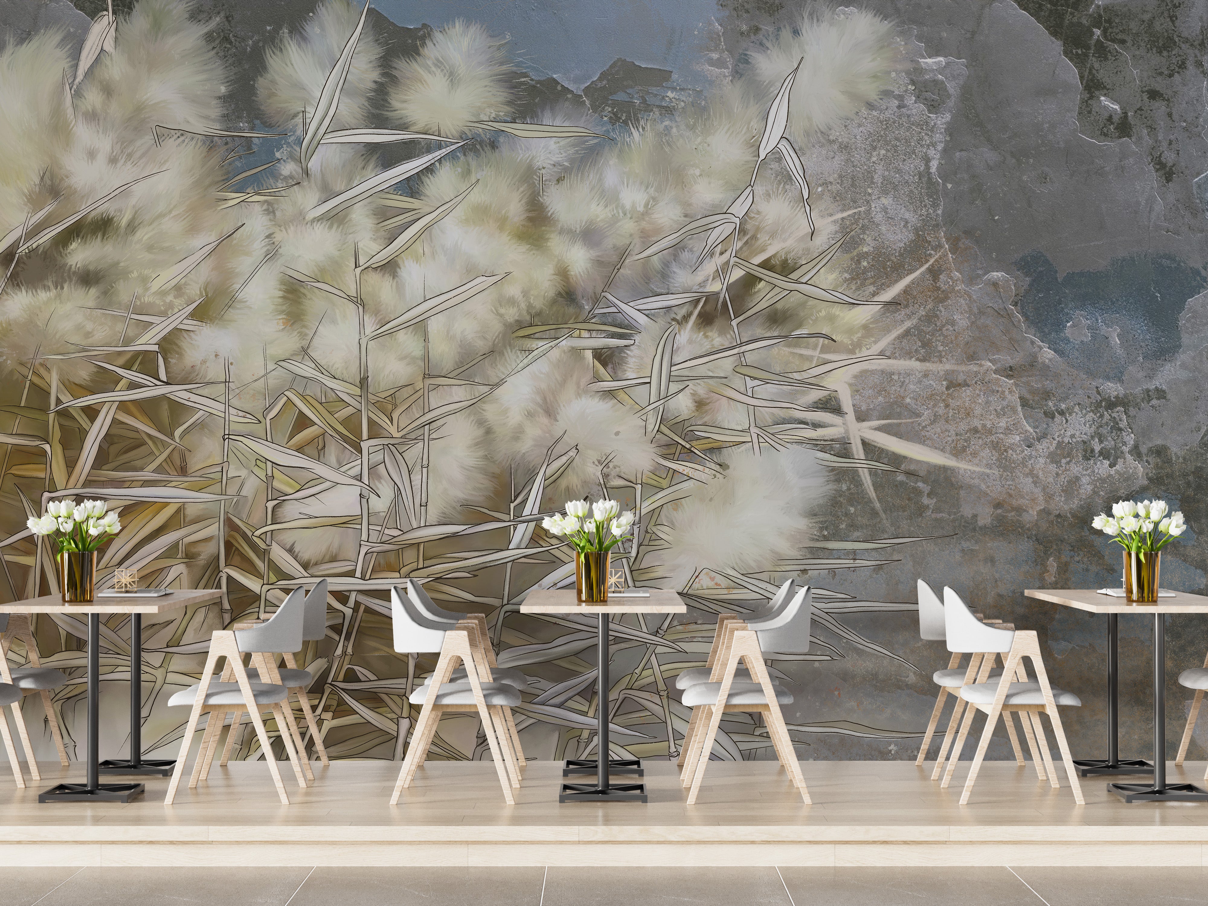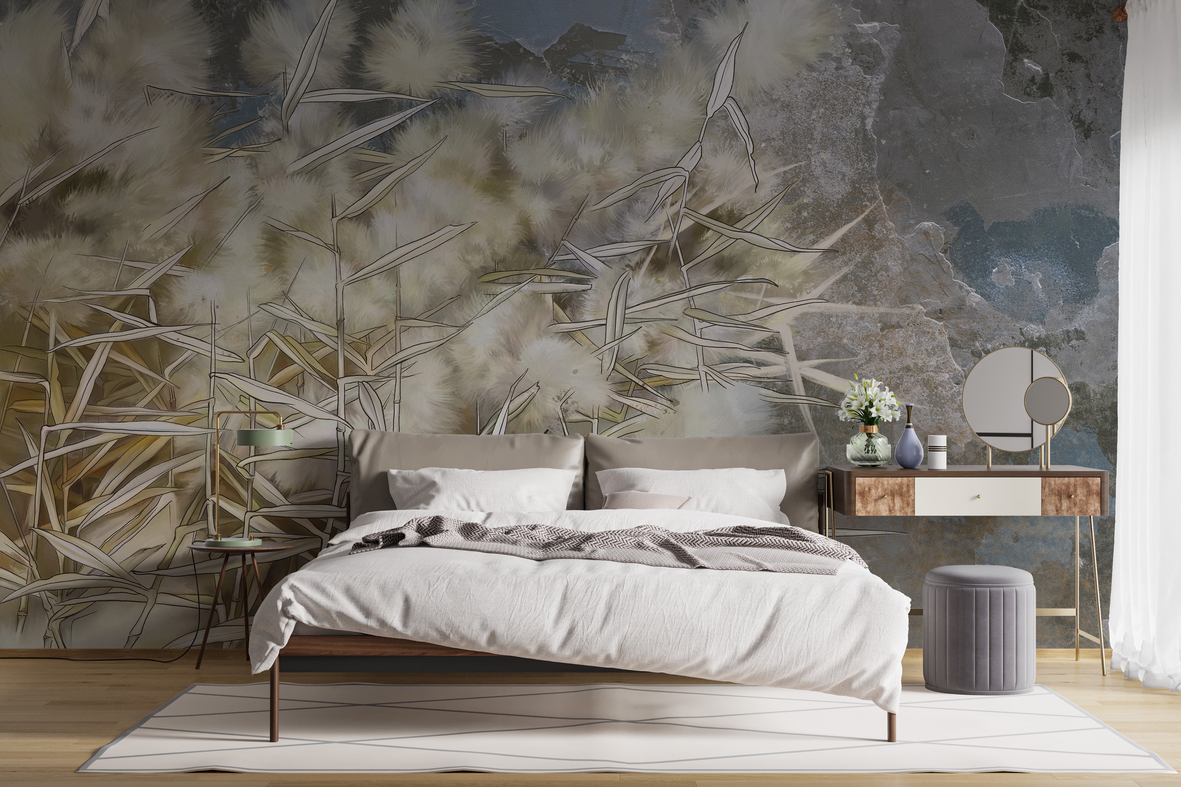 Welcome a fresh, white reed vibe into your space with the beautiful 'white reed mural', a vibrant nature design that will revitalize any space. With the calm energy radiating white reed leaves, this stylish mural will effortlessly invite a serene and peaceful theme into your interior. This will revive the breathing life back into your living room, bedroom, office spaces, and more. Stay on trend with this white reed plant design wallpaper which is a versatile aesthetic wallpaper that can be styled with various tones and furniture to match your theme. Order this ultimately classic mural from us now.