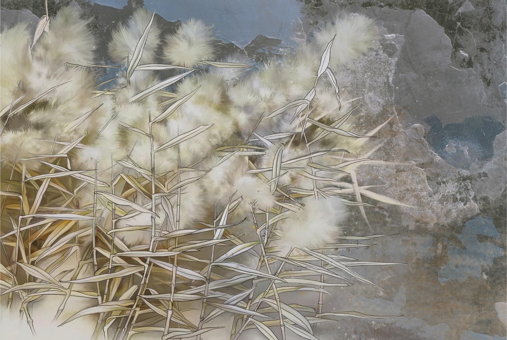 Facinating White Reed Artistic Wallpaper Mural - Giffywalls