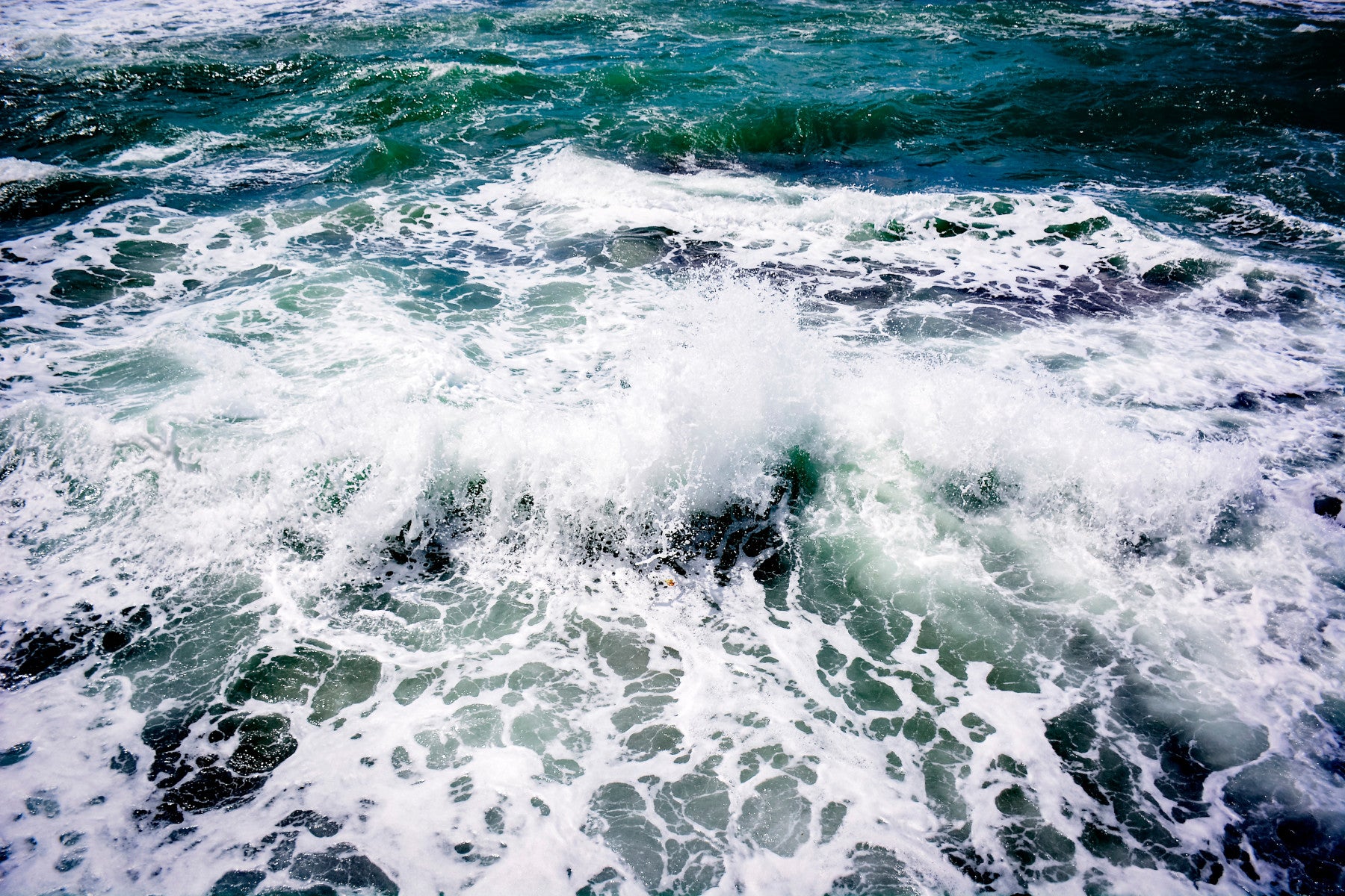 Dive into the refreshing depths of White Splash a captivating wallpaper that captures the raw power and serene beauty of the ocean's embrace. This stunning image features a dynamic interplay of deep teal waters and the brilliant white foam of a crashing wave. The turbulent surface is rendered with exquisite detail, showcasing the intricate patterns and textures created by the relentless energy of the sea. 'White Splash' evokes a sense of vitality and tranquility, perfect for bringing a touch of the natural world into your digital space. Whether you seek a calming backdrop or a vibrant burst of energy, this wallpaper will transform your screen into a window to the mesmerizing ocean. The contrasting colors create a visually striking image that is both dynamic and soothing, making it ideal for any device.