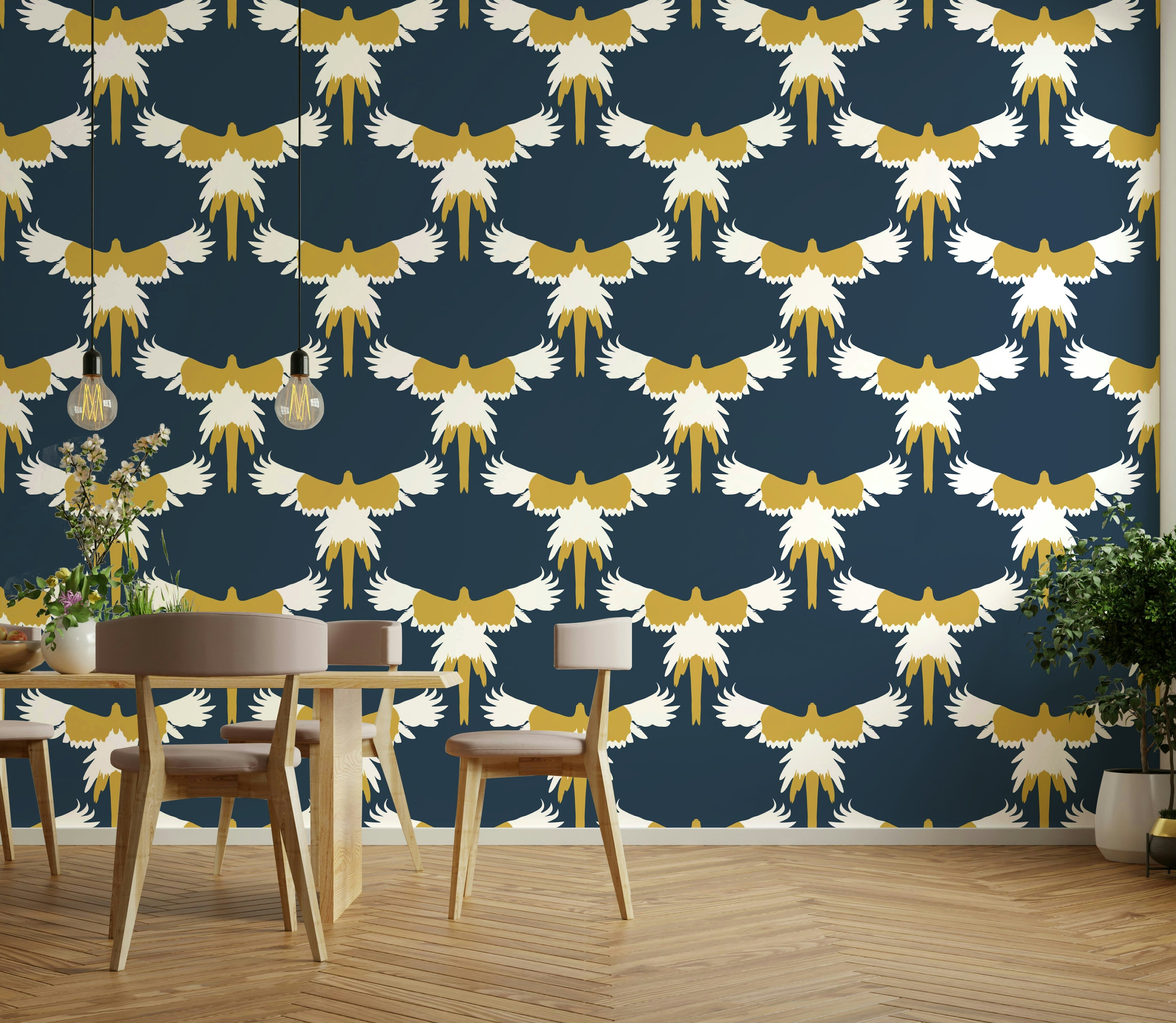 Experience the vibrant energy of the tropics with this "Wild Macaws Flying" wallpaper. Stylized macaws, rendered in bold mustard yellow and crisp white against a deep teal backdrop, create a dynamic and artistic representation of flight. The simplified silhouettes capture the essence of these majestic birds in motion, conveying a sense of freedom and exhilaration. This visually striking design is perfect for adding a touch of exotic beauty and modern flair to your digital devices, bringing a piece of the jungle to your screen.