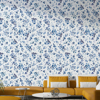 Embrace tranquility with this serene wallpaper featuring a watercolor dreamscape of wild plants. Delicate blue hues paint a calming botanical scene, where abstract leaves and blossoms dance across a pristine white background. Subtle splatters of paint add a touch of organic artistry, enhancing the relaxing mood. Perfect for creating a peaceful and stylish atmosphere on your digital devices, this wallpaper is a beautiful blend of nature's elegance and artistic expression, offering a visual escape into a world of calm and blue serenity. The soft, watercolor effect contributes to a feeling of gentle movement and quiet contemplation.