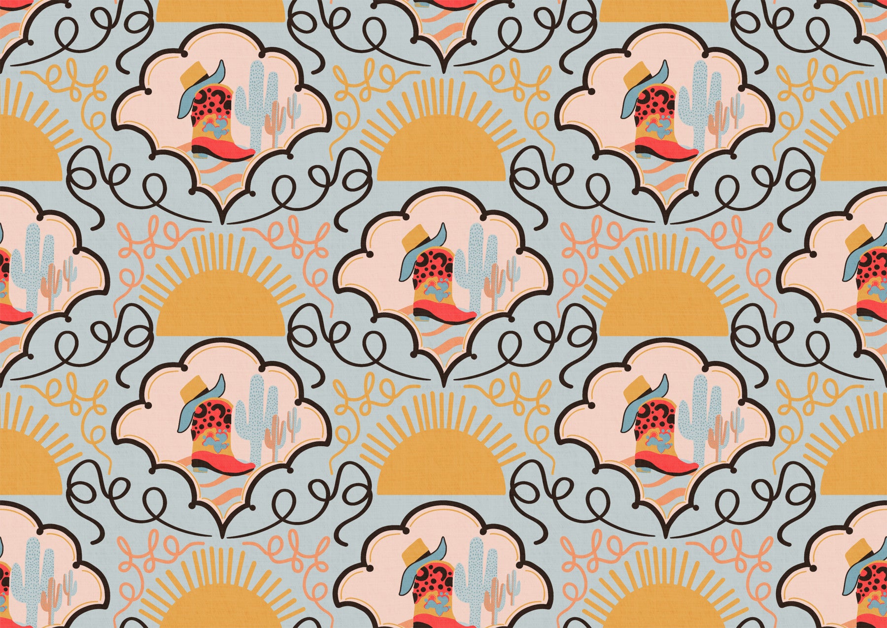 Add a playful twist to Western charm with Wild West Whimsy, a vibrant design featuring bright red cowboy boots, golden sunbursts, and hand-drawn cacti. Set against a soft, textured backdrop with swirling linework, this wallpaper brings movement and joy to any space. The pastel colour palette-featuring soft reds, pinks, and sandy tones, gives it a modern, lighthearted feel. Perfect for kids’ bedrooms, creative playrooms, or even a quirky home office, this design is for dreamers, little cowpokes, and anyone looking to bring a dose of yeehaw into their decor. Ideal for Western-themed interiors, cowboy nurseries, or eclectic, folk-art-inspired homes.