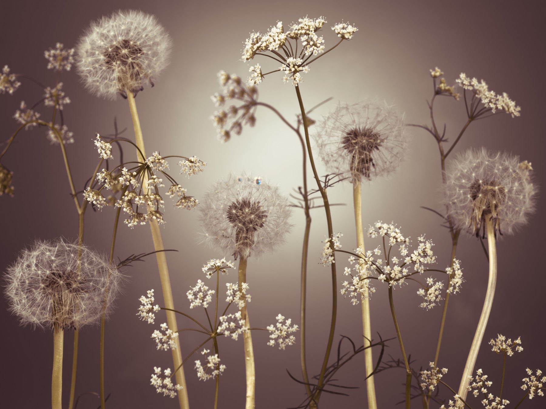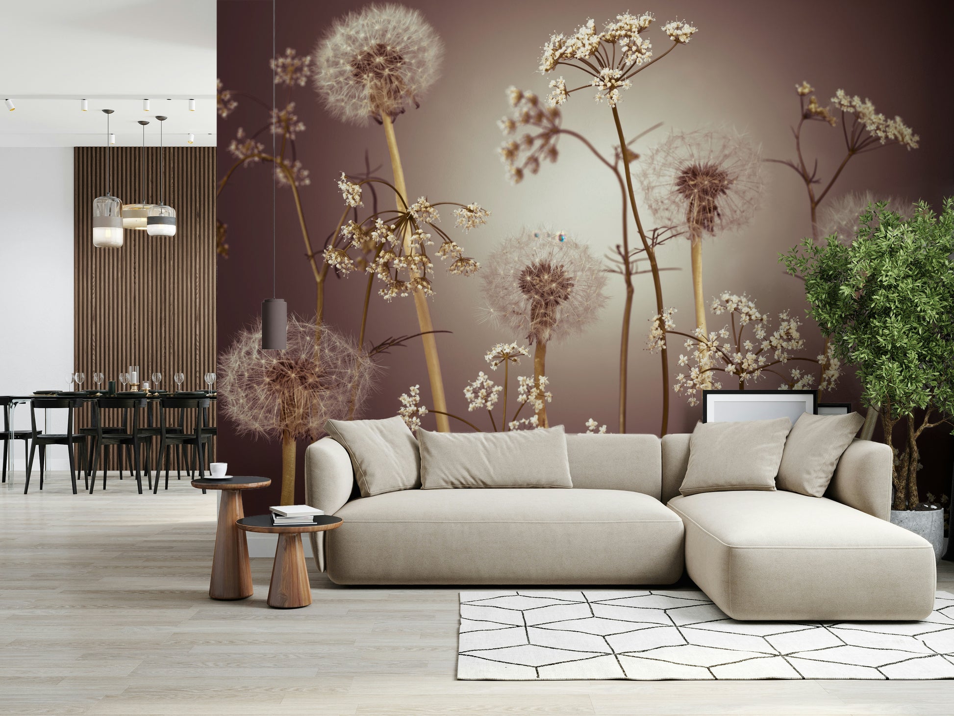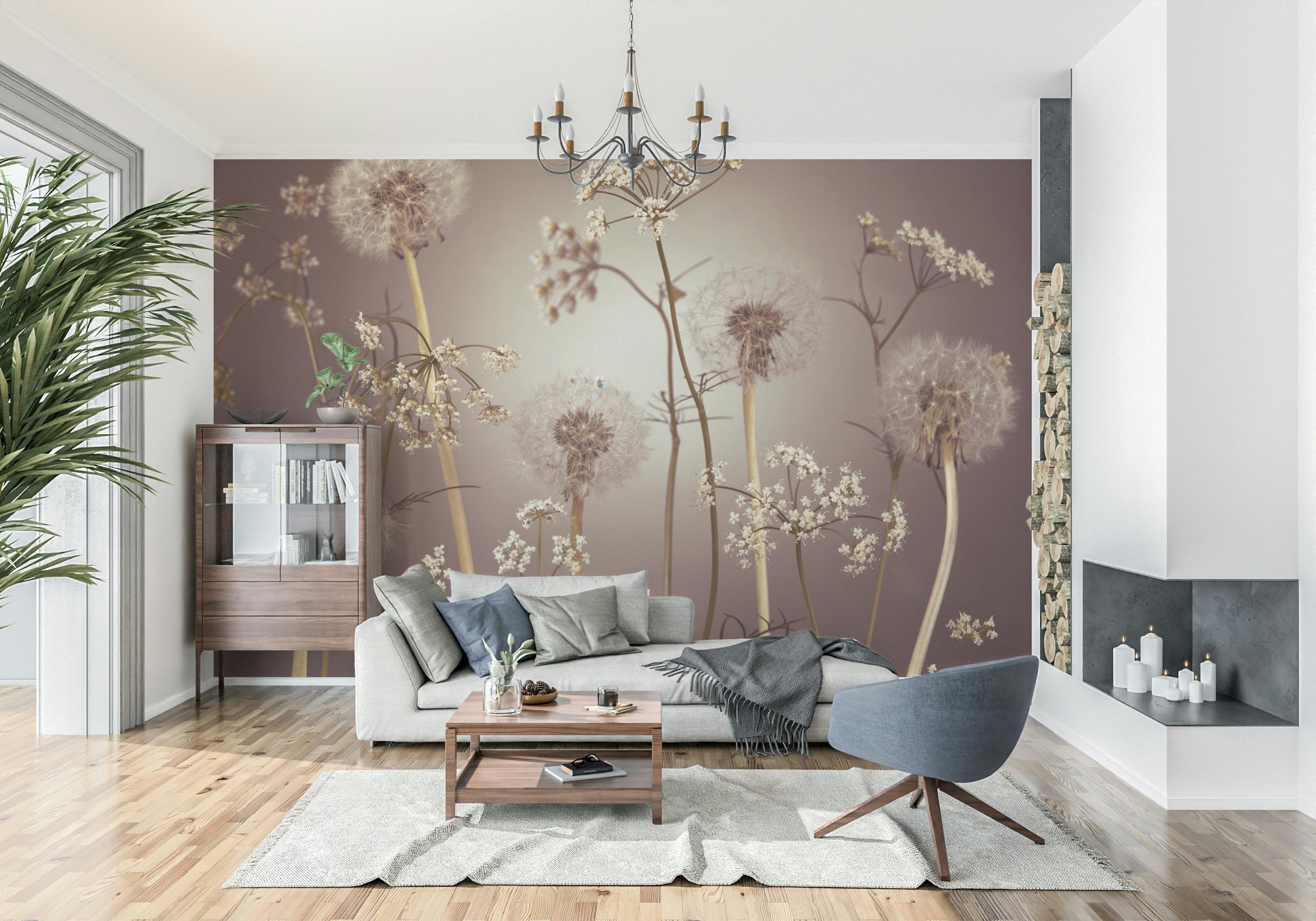 Transform any room with the serene charm of this floral wallpaper for walls. The design showcases the delicate interplay of dandelions and wildflowers against a soft, muted backdrop. Its subdued palette brings a sense of calm and understated elegance to your interior. This wallpaper enhances spaces like bedrooms, living rooms, or hallways, infusing them with a touch of nature's gentle beauty. The intricate details and organic composition create a visually appealing and cohesive aesthetic that complements both modern and traditional decor.