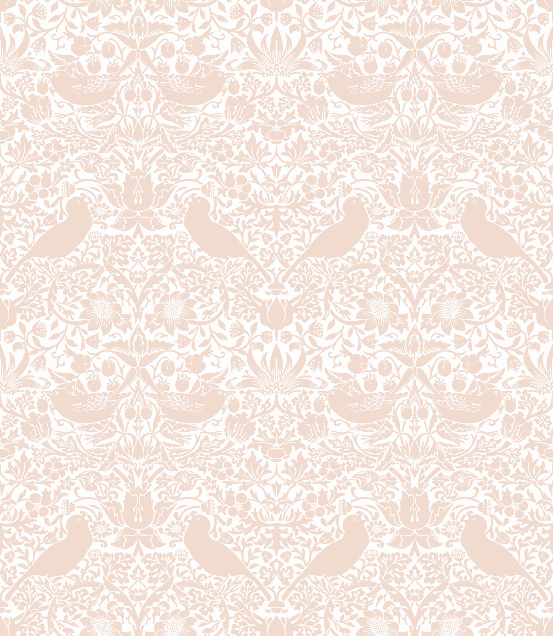 William Morris - The Strawberry Thief Pink White Wallpaper⁠