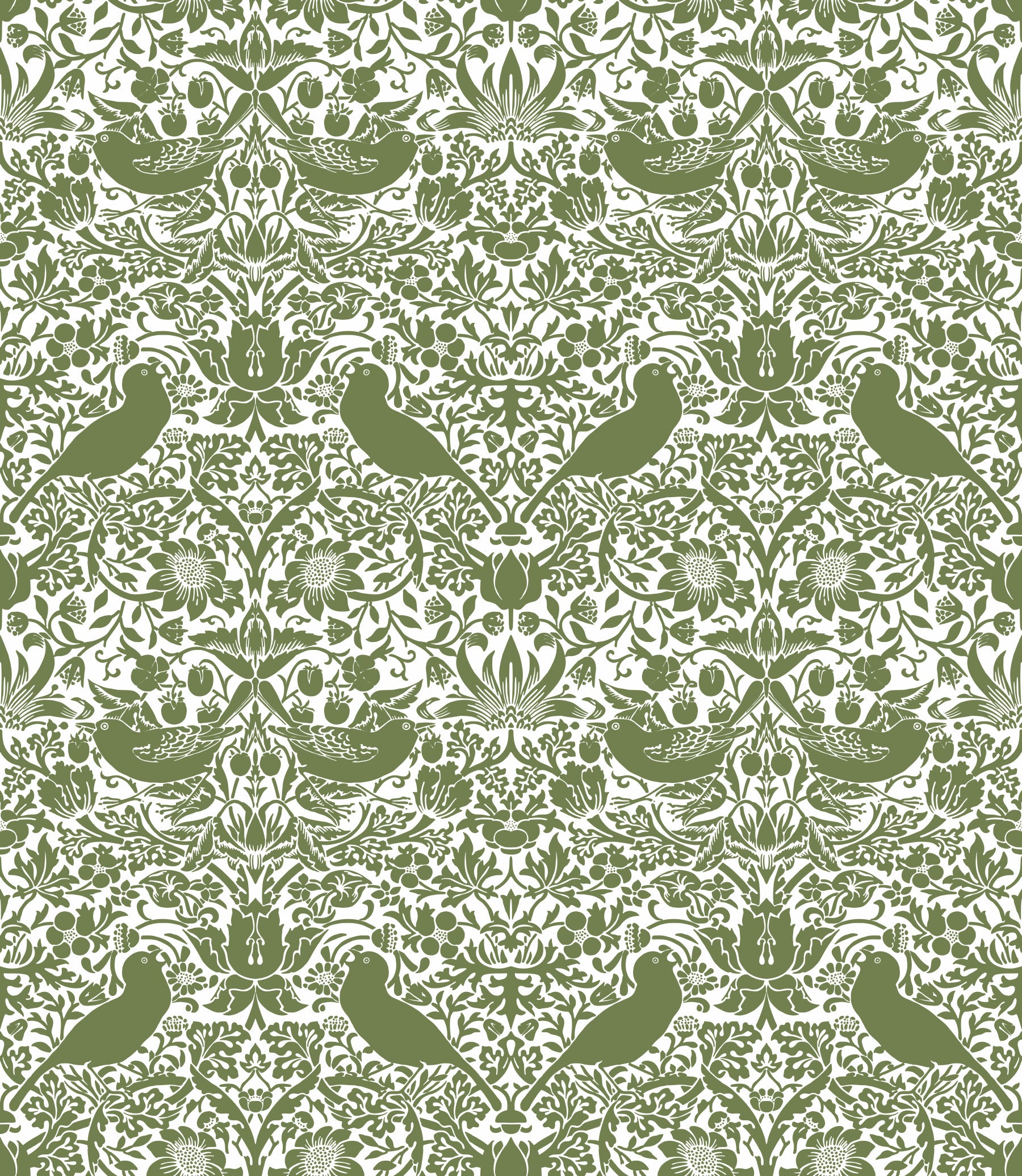 William Morris - The Strawberry Thief - Sage Green White Wallpaper⁠