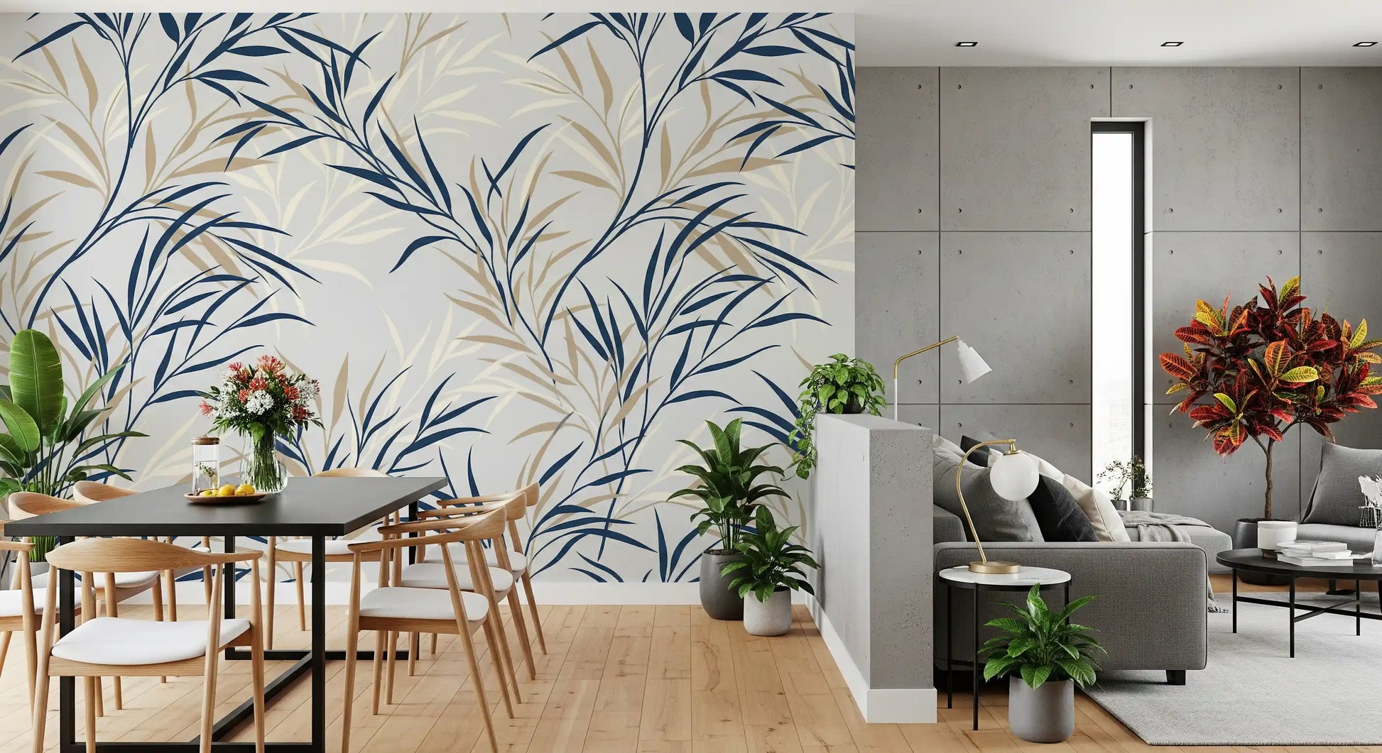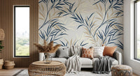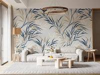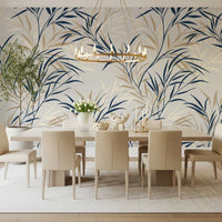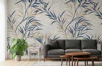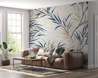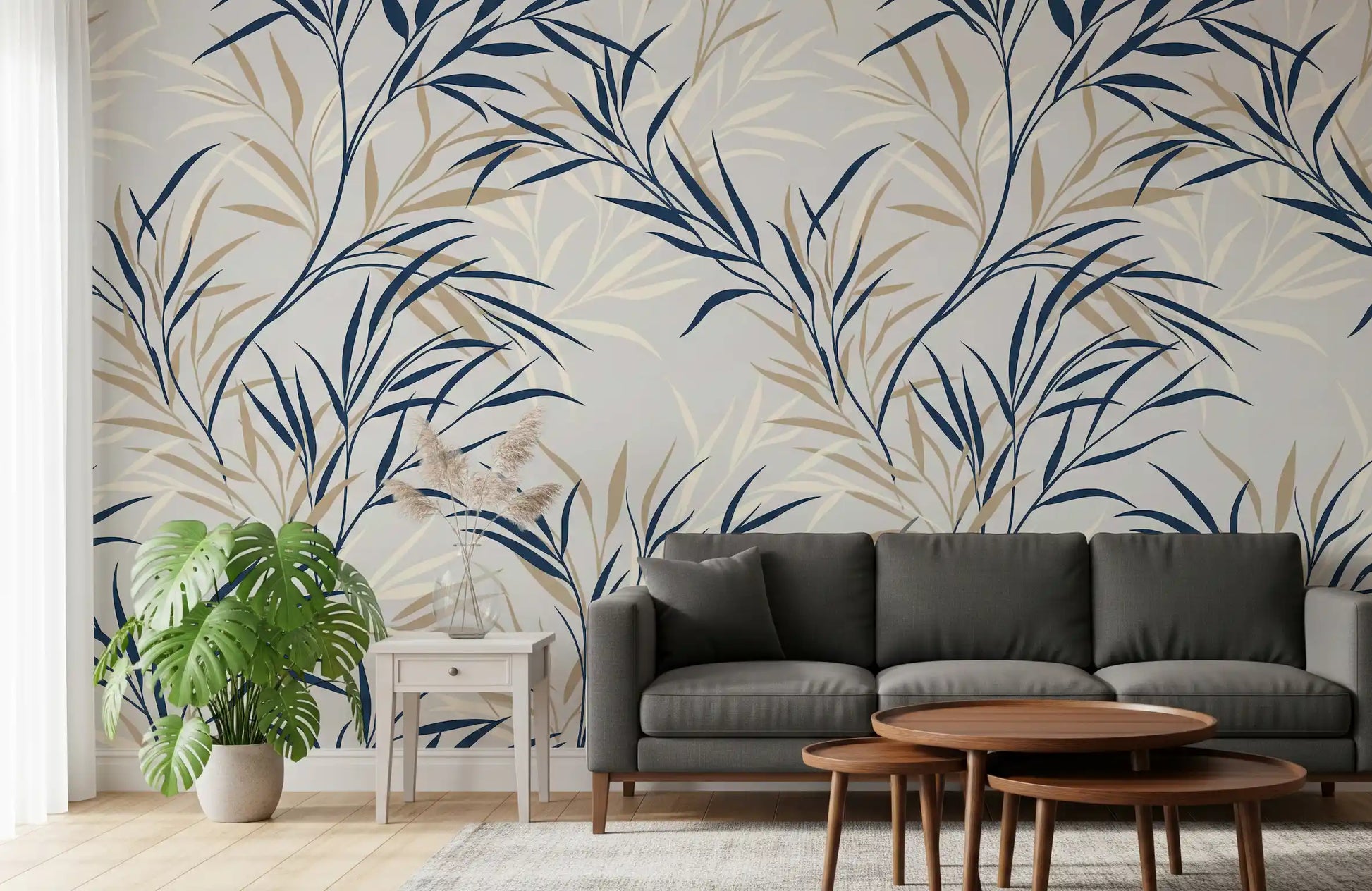 Discover a sophisticated botanical design with this exquisite wallpaper for walls. Slender, willow-like branches in a rich navy blue elegantly intertwine with subtle beige accents, all set against a calming light grey backdrop. This organic, minimalist pattern offers a sense of graceful movement and natural tranquillity, transforming any space into a serene retreat. The refined colour palette effortlessly enhances living rooms, bedrooms, and dining areas, adding depth and a peaceful ambience. It perfectly complements modern, Scandinavian, or transitional interior styles, creating an inviting and visually calming environment. This distinctive design subtly elevates your home's aesthetic with its contemporary botanical allure.