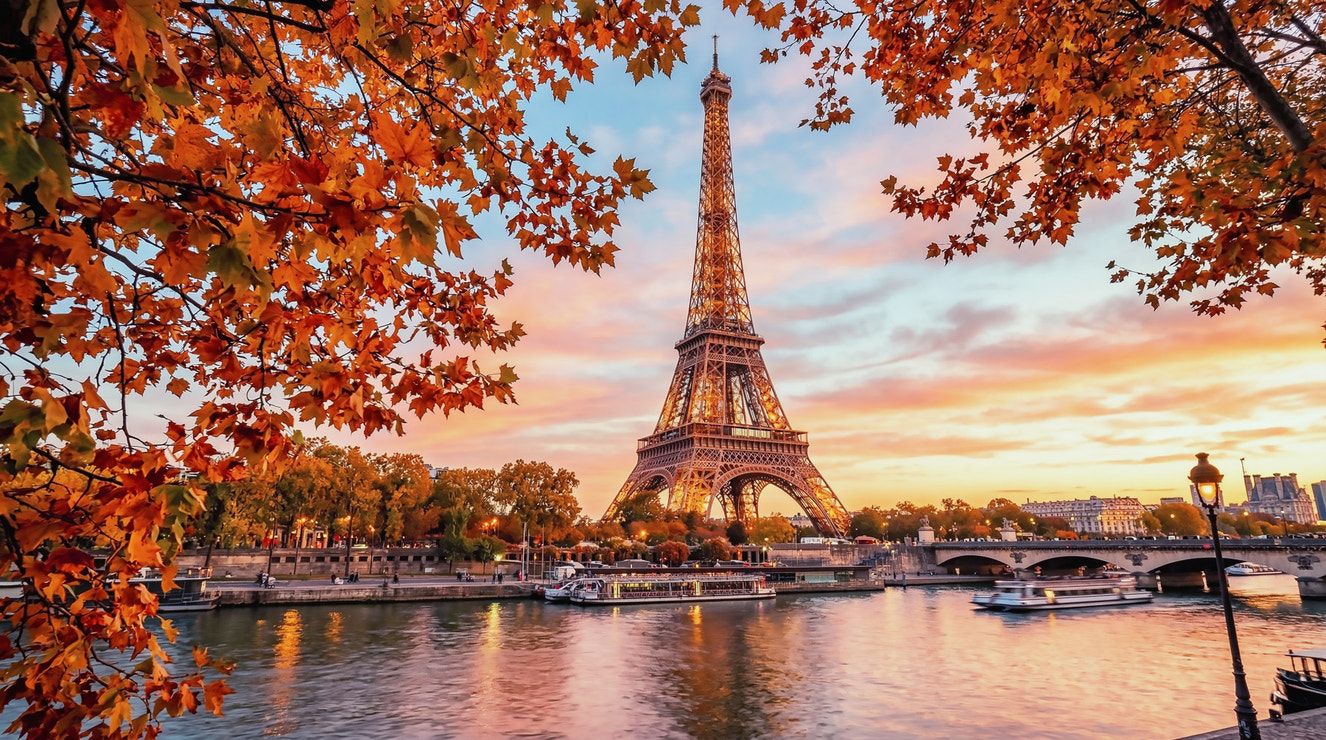 Romantic city skyline wall mural named Window to Paris for bedrooms.