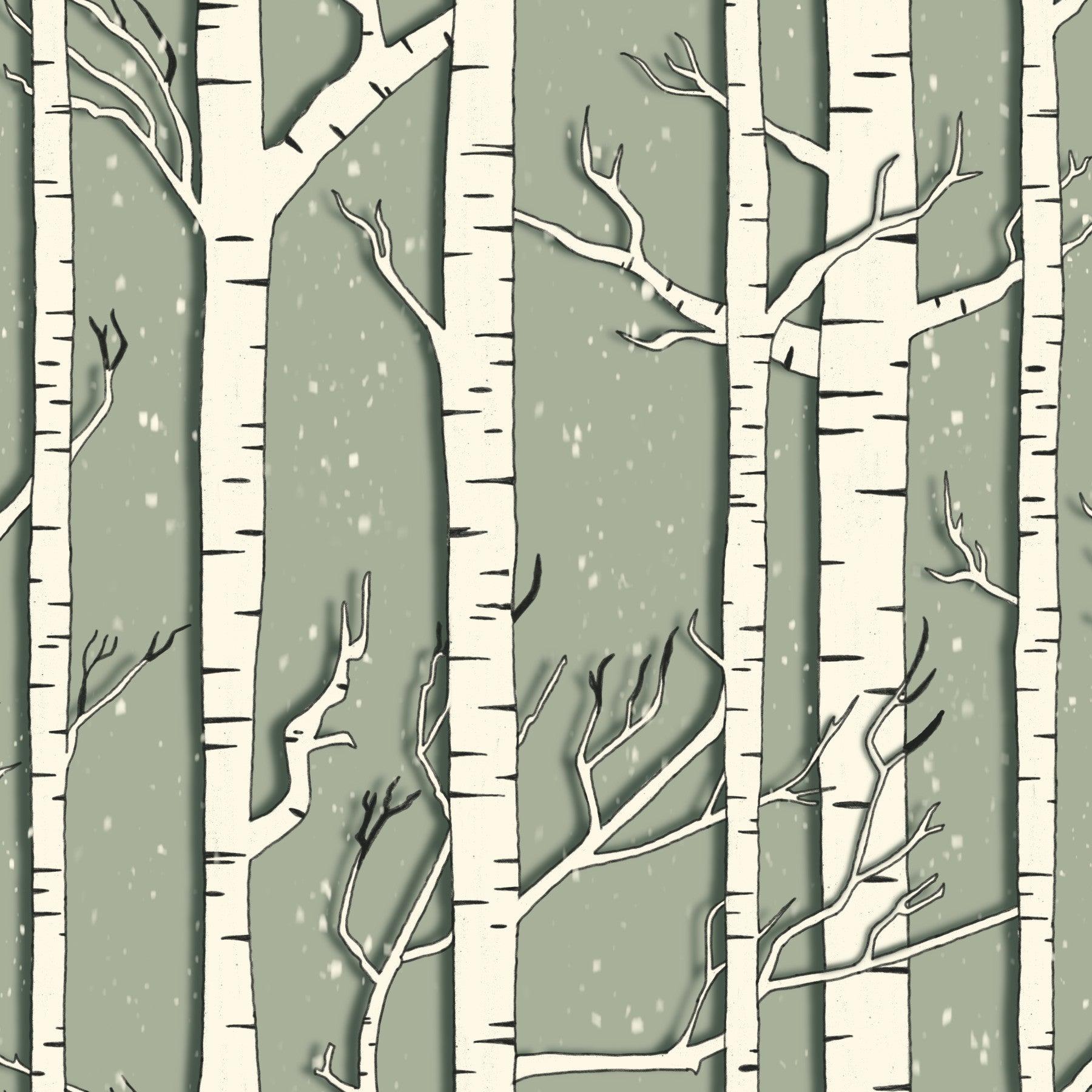 Winter forest wall covering with whispering birch trees for bedrooms or living rooms.