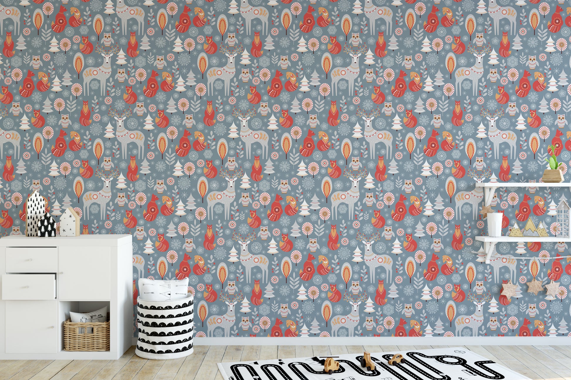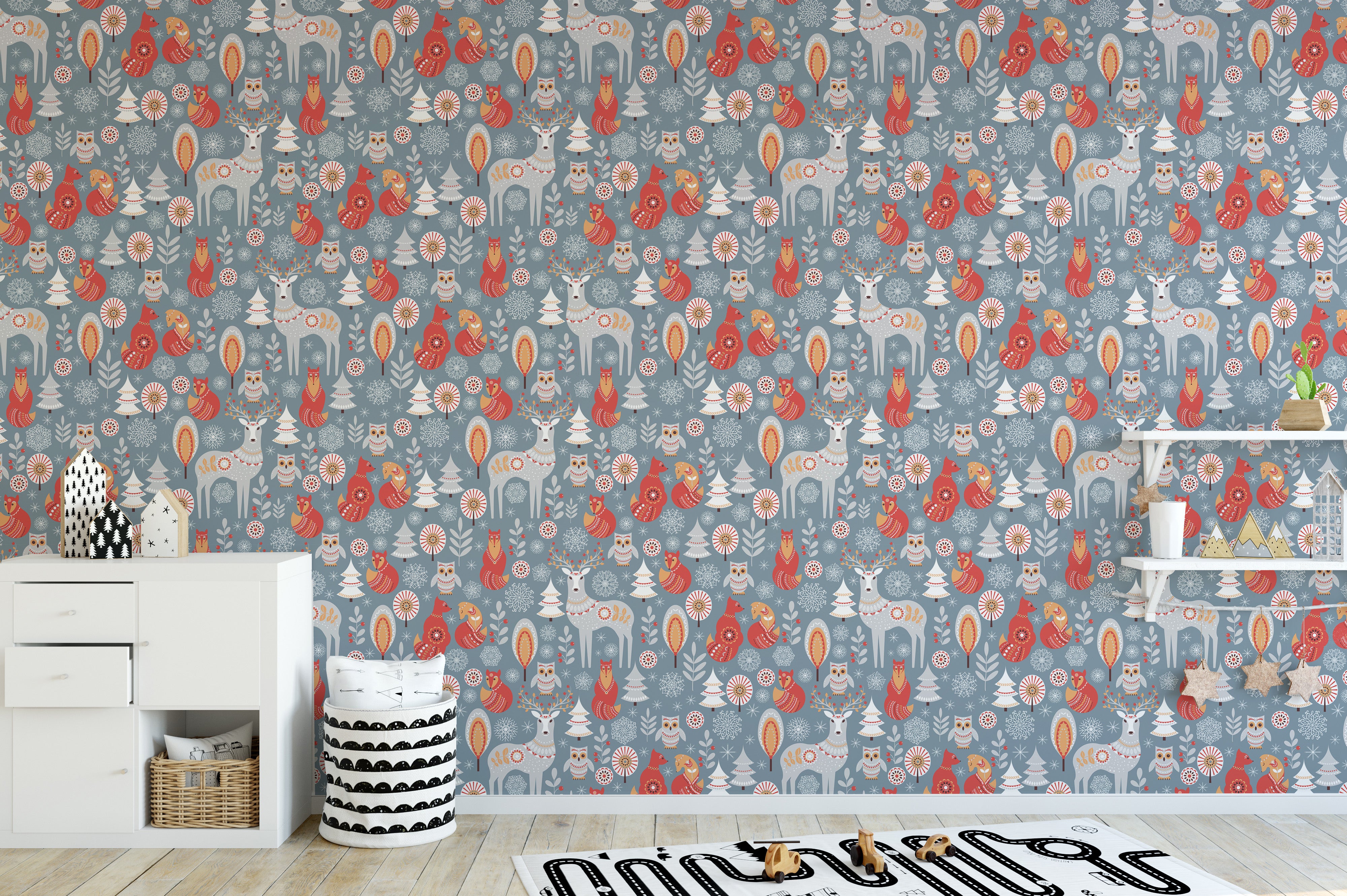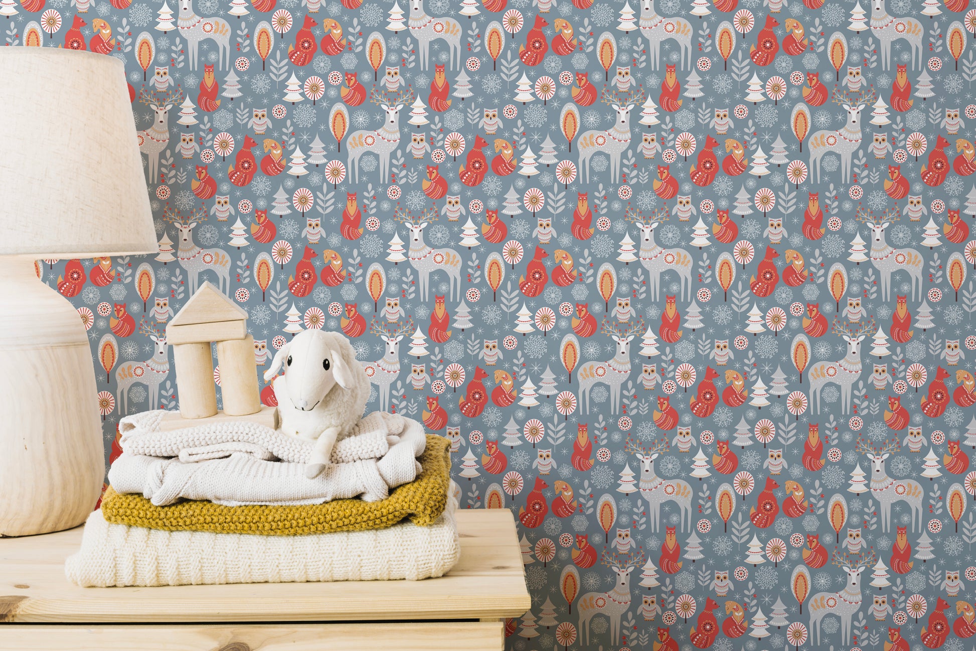 Welcome the serene beauty of a winter forest into your home with our Winter Forest Deer and Fox Wallpaper. This enchanting forest design captures the peaceful essence of a snowy landscape, featuring graceful deer and cunning foxes amidst a backdrop of frost-covered trees. The soft, muted colors and delicate details create a soothing and cozy atmosphere, ideal for bedrooms, living rooms, or any living space that calls for a touch of winter magic. Transform your room into a tranquil forest retreat where you can unwind and enjoy the silent splendor of nature's winter wonderland.