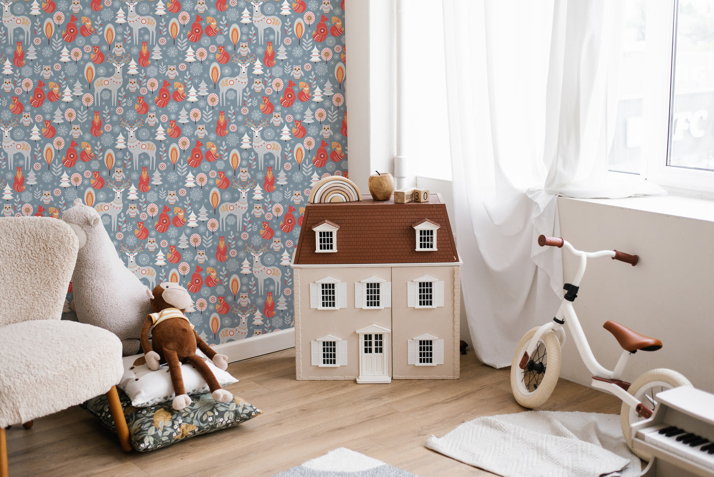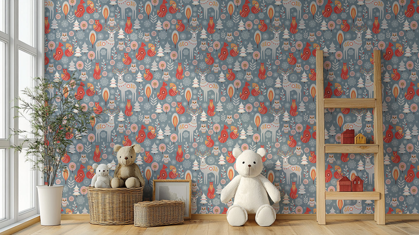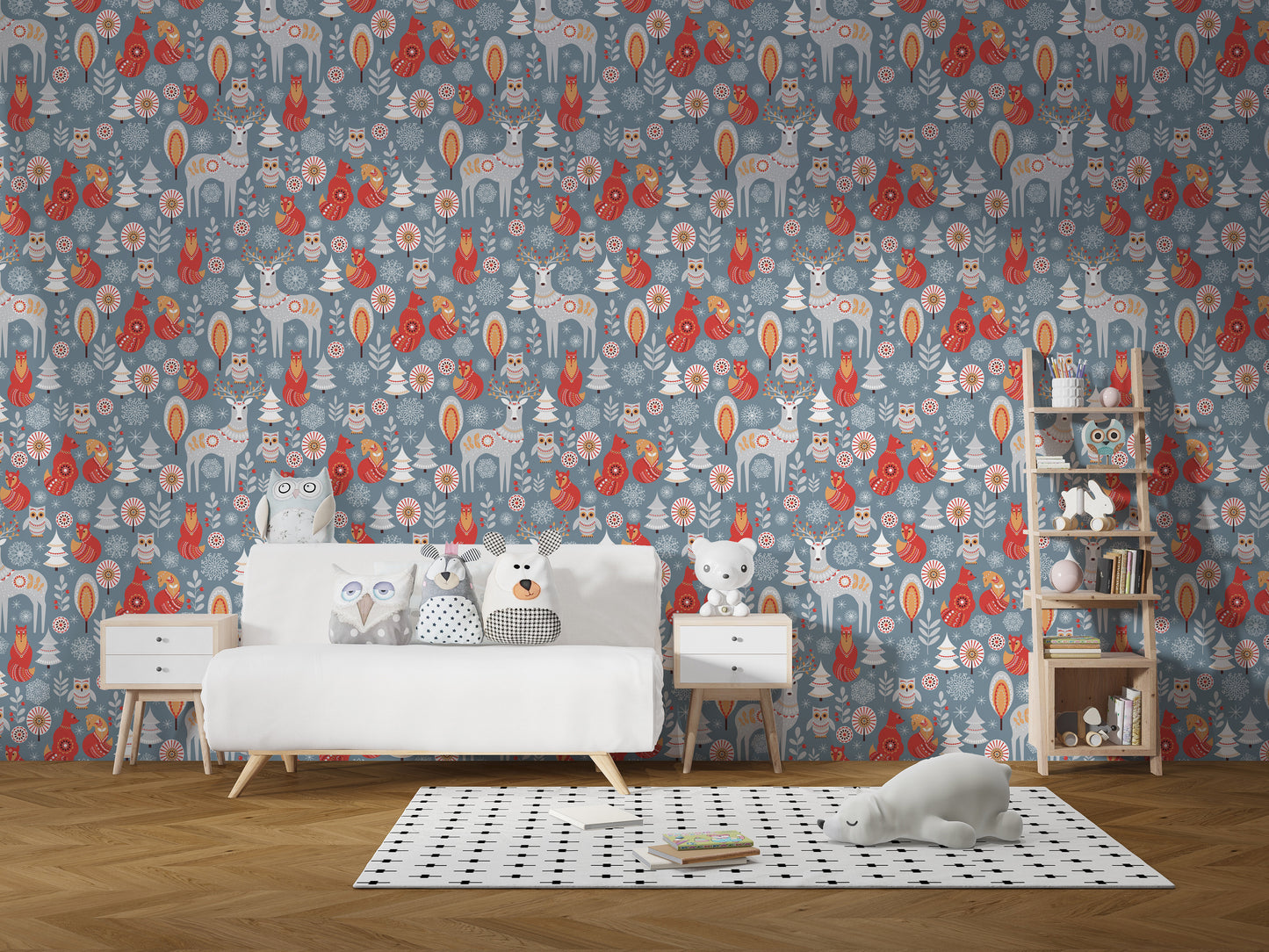 Welcome the serene beauty of a winter forest into your home with our Winter Forest Deer and Fox Wallpaper. This enchanting forest design captures the peaceful essence of a snowy landscape, featuring graceful deer and cunning foxes amidst a backdrop of frost-covered trees. The soft, muted colors and delicate details create a soothing and cozy atmosphere, ideal for bedrooms, living rooms, or any living space that calls for a touch of winter magic. Transform your room into a tranquil forest retreat where you can unwind and enjoy the silent splendor of nature's winter wonderland.