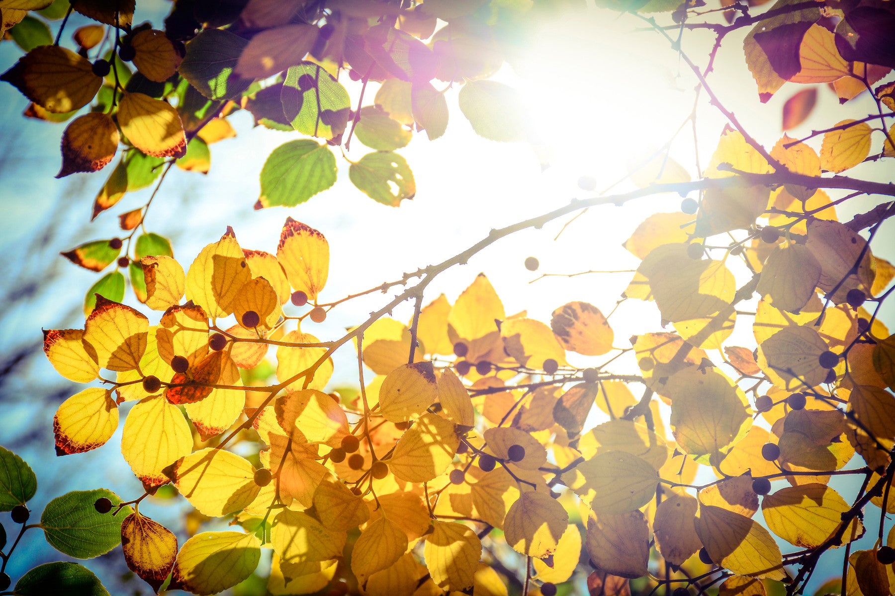 Embrace the serene beauty of the transition with Winter is finally here a wallpaper capturing the last rays of autumnal sunshine filtering through the golden leaves. The image presents a close-up view of branches adorned with leaves in shades of yellow, tinged with hints of green and brown, illuminated by a bright, almost ethereal light. This creates a warm, inviting contrast against the clear, cool blue sky visible through the foliage. The composition evokes a sense of stillness and peace, marking the quiet arrival of winter. Download this stunning wallpaper to bring the beauty of the season's changing colors and the anticipation of winter's tranquility to your digital space, a gentle reminder of nature's cyclical grace.