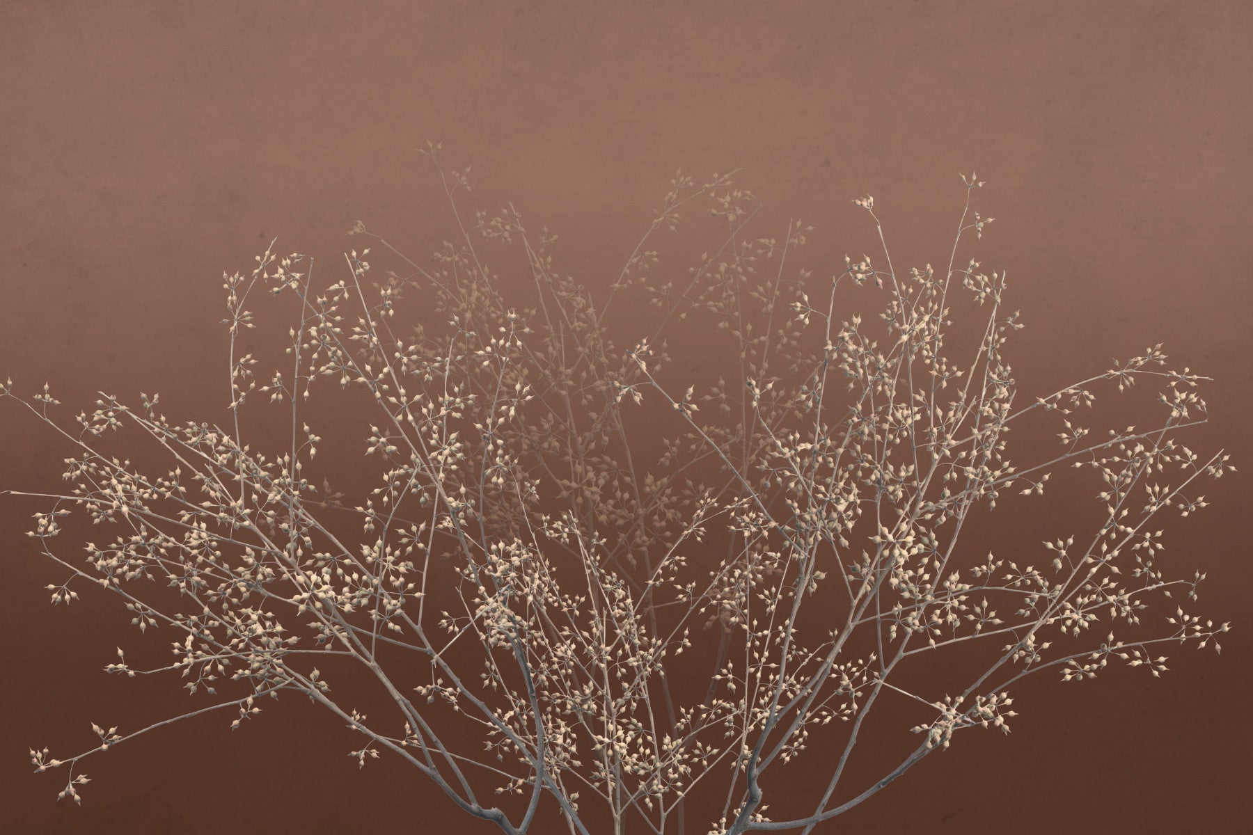Bring understated elegance to your space. Ghostly branches reach upwards against a warm, chocolate-brown backdrop. This wallpaper for walls is a subtle way to introduce nature into your home. The design features bare branches in winter, creating a cozy and serene ambiance. Perfect for bedrooms, studies, or dining rooms where you want to add a touch of organic beauty that blends easily with your décor. This wallpaper will add warmth to your home.