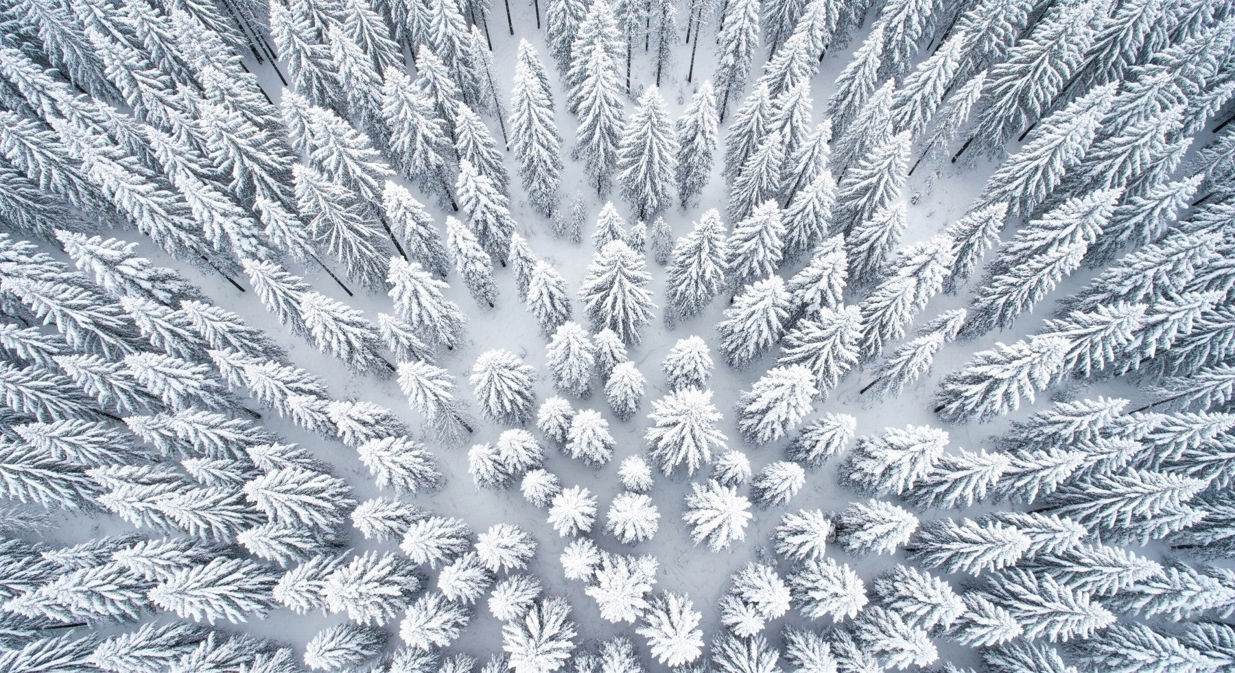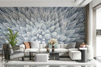 Transform your home into a serene winter wonderland with this captivating wallpaper for walls. The design showcases a dense forest blanketed in fresh snow, captured from an aerial perspective. The pattern creates a calming effect, ideal for bedrooms and living areas. The monochrome palette of white and grey offers a peaceful, sophisticated touch. Introduce a sense of tranquility and fresh air into your interior space. It works wonders in any room that needs quiet elegance.