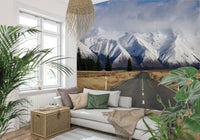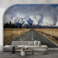 Embark on a visual journey with 'Winter's Road,' a stunning wallpaper that captures the serene beauty of a wintry landscape. A seemingly endless asphalt road stretches towards a majestic mountain range, their peaks capped with pristine snow. The foreground is a tapestry of dry, golden grasses, contrasting beautifully with the cool tones of the mountains and sky. Wisps of cloud cling to the higher elevations, adding a touch of mystery and drama to the scene. Isolated clusters of dark green pines punctuate the landscape, providing a visual anchor in the vast expanse. This image evokes a sense of solitude, adventure, and the quiet grandeur of nature in its winter coat. Perfect for adding a touch of calm and scenic beauty to your digital space, 'Winter's Road' invites you to contemplate the journey ahead and appreciate the breathtaking vistas that await.