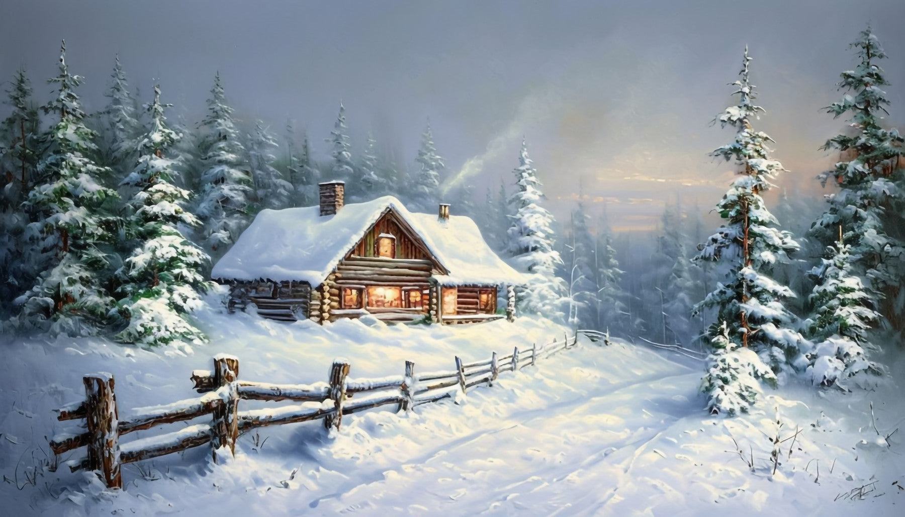 Bring the beauty of winter indoors with this serene wallpaper. A snug log cabin surrounded by snow-kissed trees welcomes you with its warm, inviting light. Gentle blues and whites dominate, offering a calm backdrop to the golden hues glowing from within. This wallpaper for walls adds a cosy touch to any living space, perfect for creating a peaceful reading nook or a calming bedroom environment. Imagine the warmth and serenity this scene brings to your home, evoking a sense of comfort and relaxation.