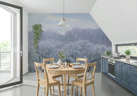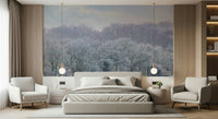 Bring a breath of fresh air into your home. This wallpaper for walls showcases a forest shrouded in mist. A light dusting of snow glistens on the trees. Soft, neutral hues create a relaxing vibe, perfect for bedrooms, living areas, or a calm home office. The delicate scene adds a touch of organic beauty. This wallpaper complements minimalist décor or natural colour schemes. The muted tones and subtle texture enhance rooms creating a cosy and inviting atmosphere.