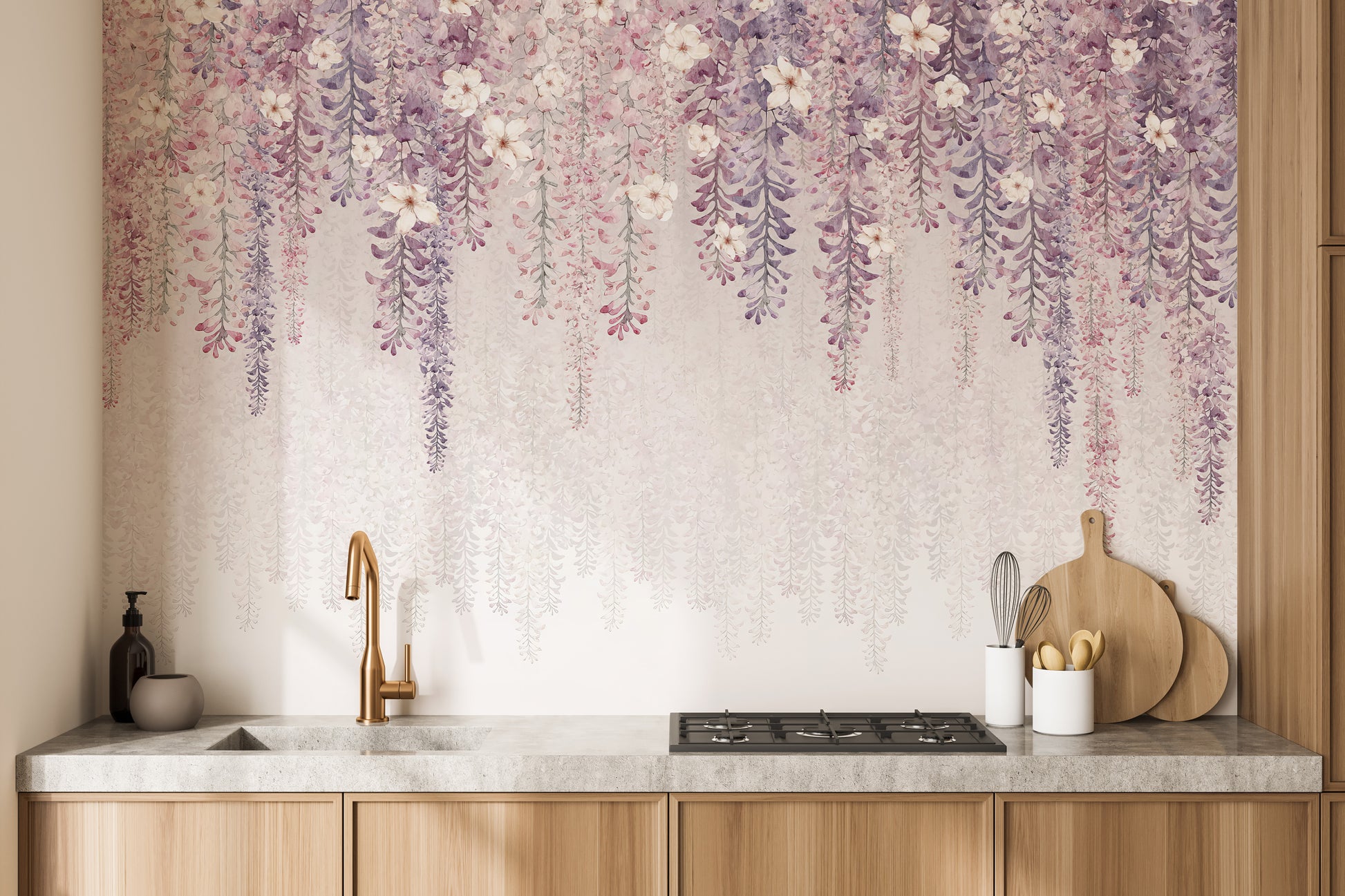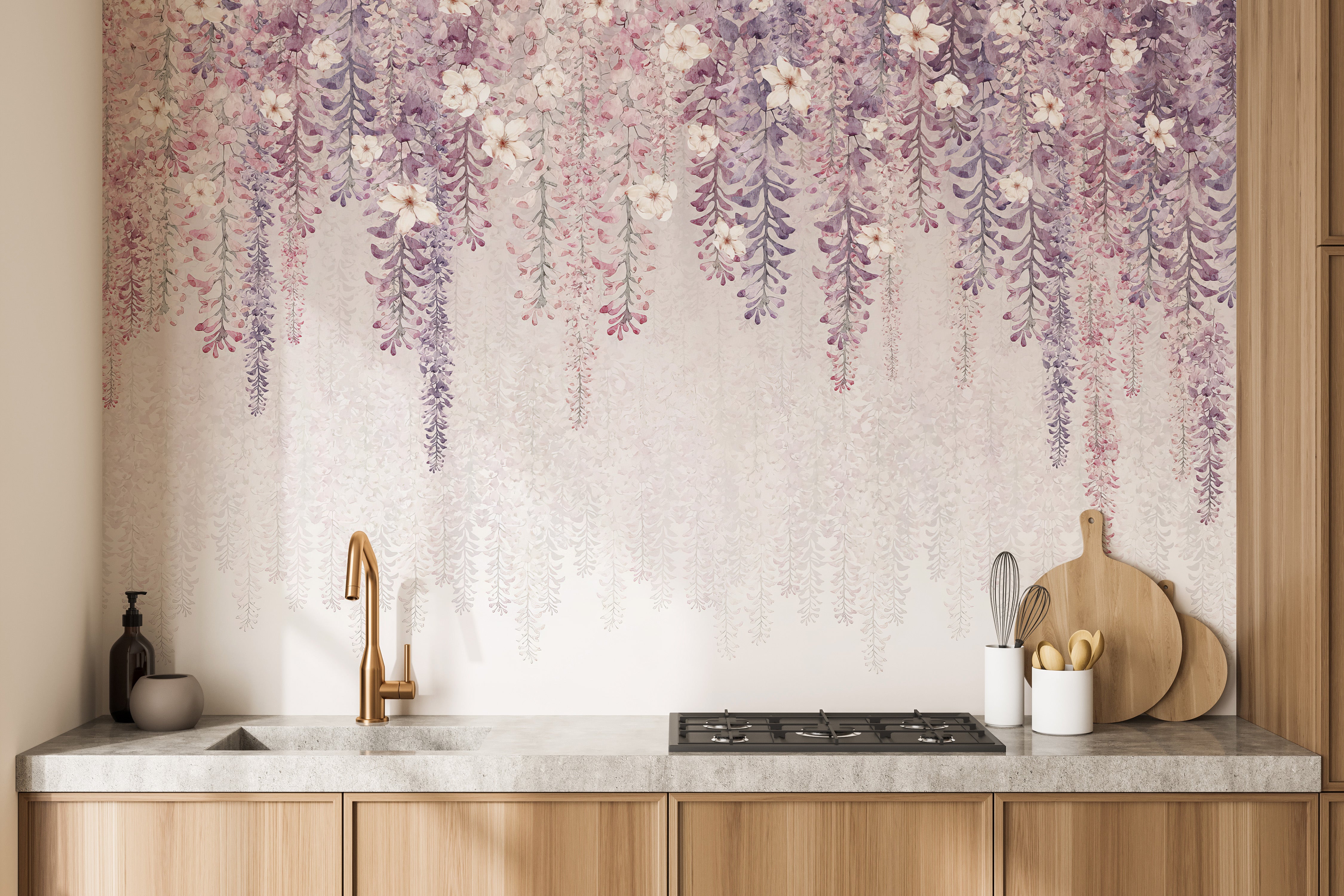 Wisteria Watercolor Wallpaper Mural - Giffywalls