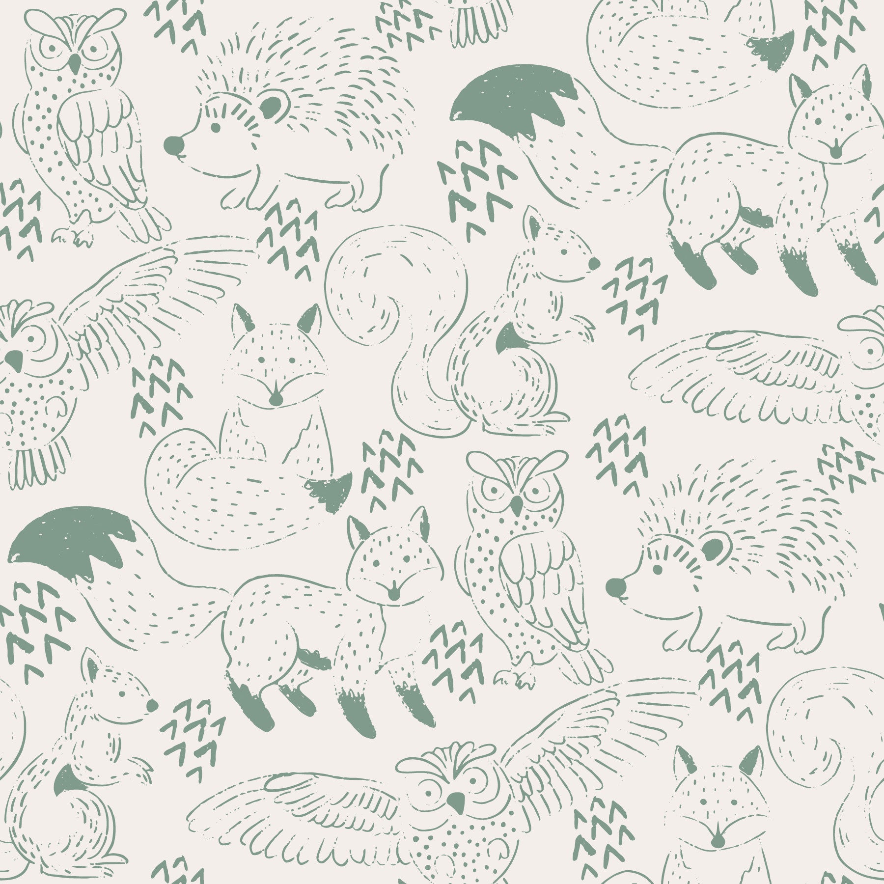 Subtle green wallpaper featuring woodland creatures