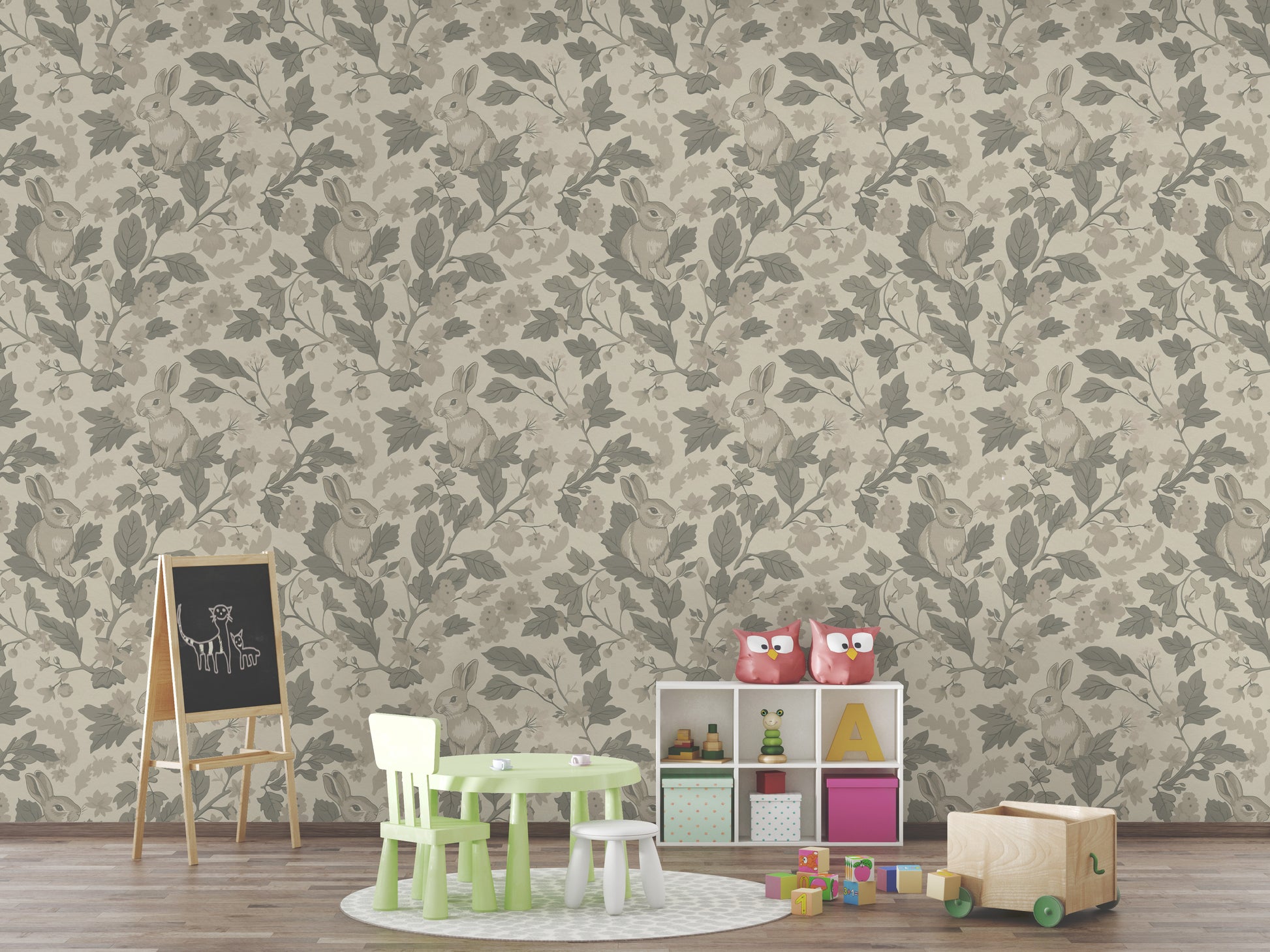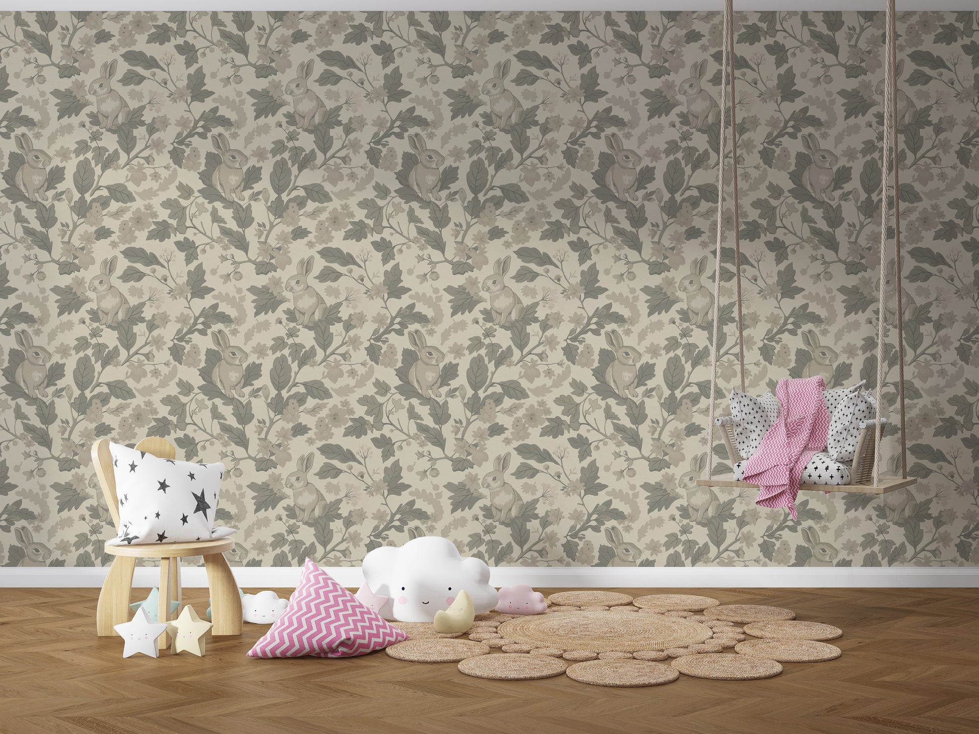 Create a calm and dreamy atmosphere with our Woodland Garden Wallpaper from Kids Dream Walls – now available in the Natural Beige colorway. This hand-drawn design features gentle rabbits nestled among delicate florals and winding branches, evoking a serene connection to nature. The earthy palette of warm beige tones, soft greens, and light natural hues brings a cozy and timeless feel to any space. The classic woodland setting sparks imagination and offers a sense of comfort and tranquility – ideal for nurseries, playrooms, or nature-inspired interiors where little ones can feel safe, curious, and inspired.