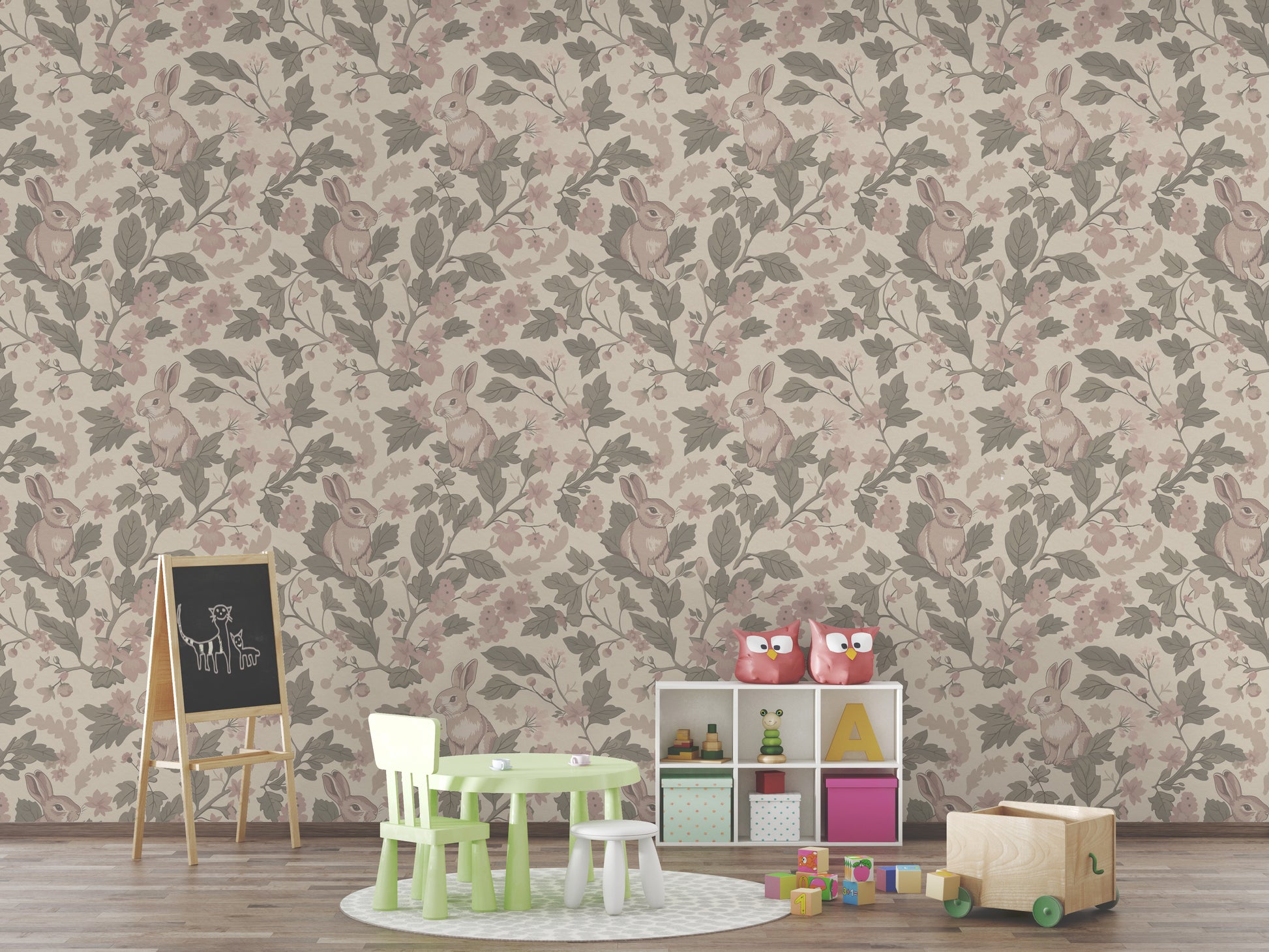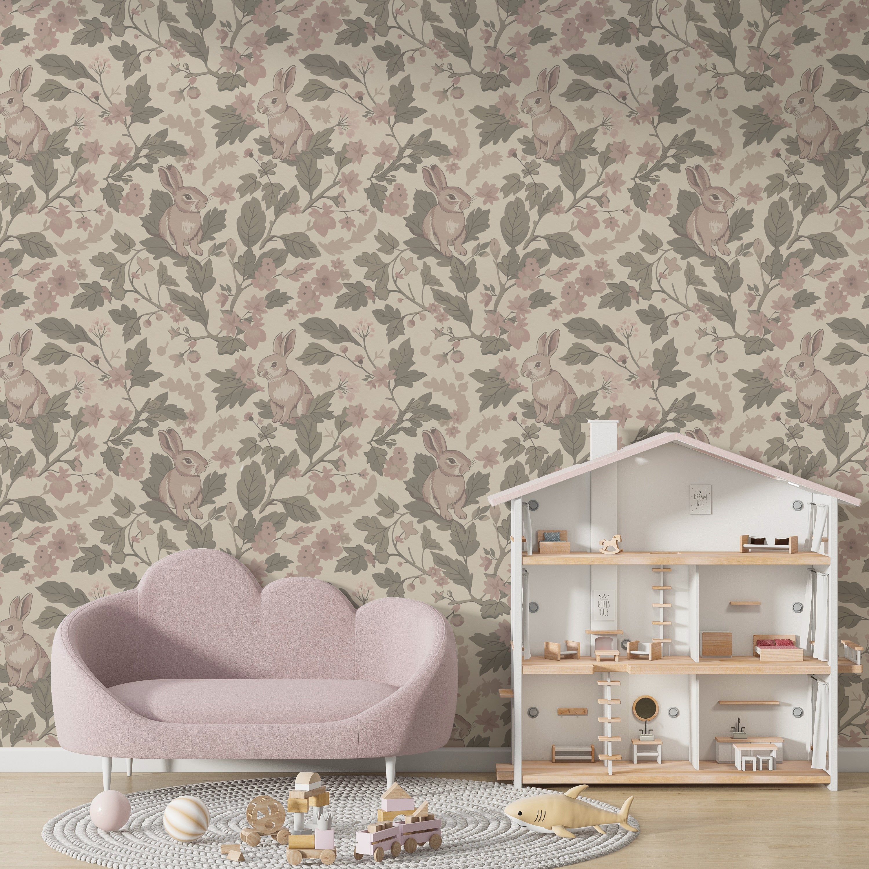 Create a calming and whimsical space with our Woodland Garden Wallpaper from Kids Dream Walls. This enchanting design features hand-drawn rabbits nestled among soft florals and leafy branches—perfect for nurseries, toddler rooms, or nature-inspired interiors. The gentle palette of blush pinks, muted greens, and creamy neutrals adds warmth and charm to any room. The timeless woodland theme invites imagination and a sense of tranquility, making it ideal for creating a peaceful, storybook-like space where little ones can feel safe, curious, and inspired.