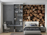 Transform your space with this detailed woodpile texture. This wallpaper for walls brings a rustic charm to any room, offering a close-up view of neatly stacked firewood. Warm brown tones enrich the scene and add depth. Ideal for a living room, study, or cabin-themed space. It complements interiors with its natural vibe, creating a cosy and inviting ambiance.