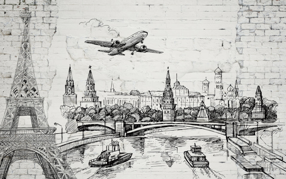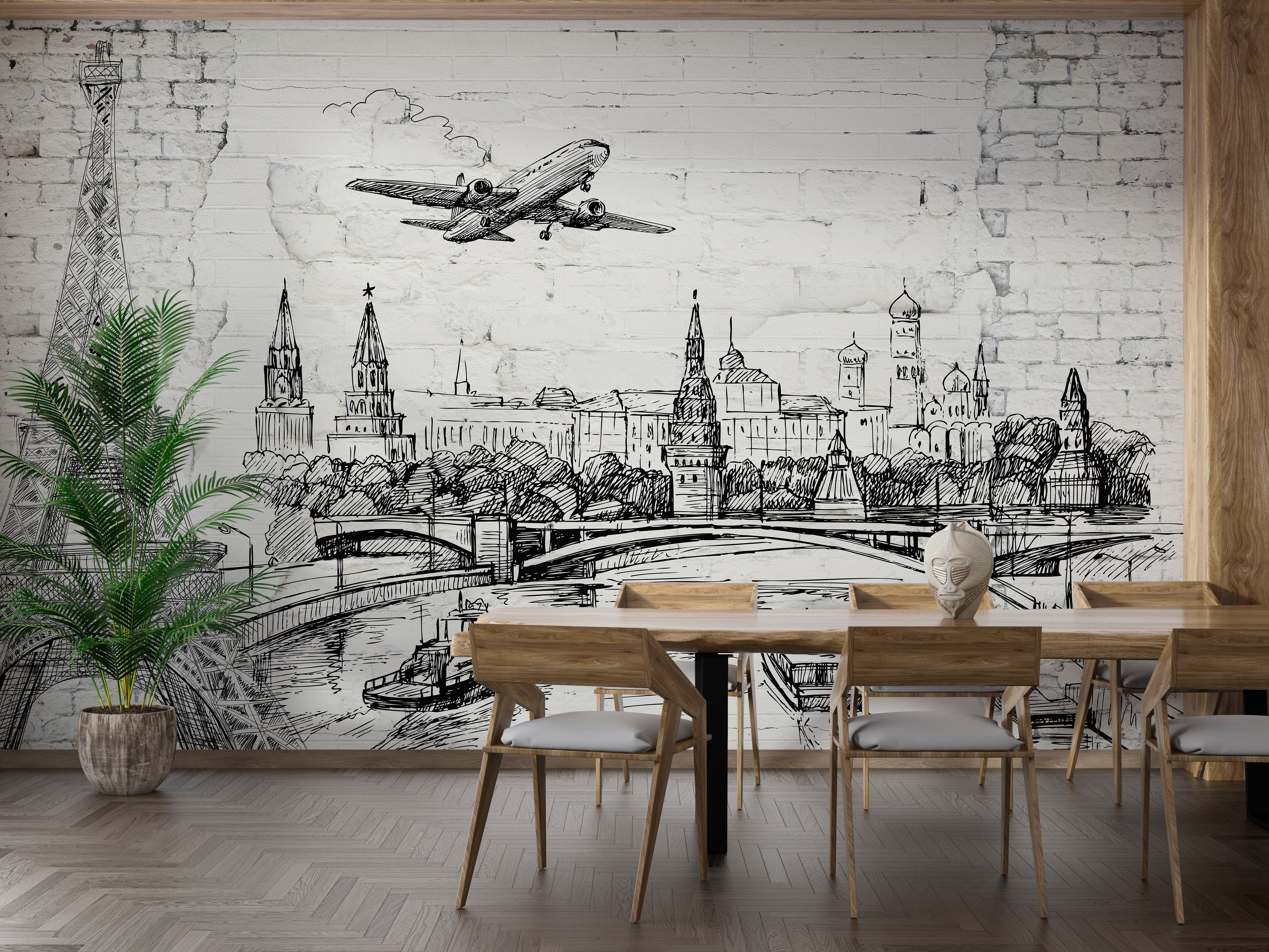 You are introducing the latest addition to our office wallpaper collection - the old brick landmarks mural wallpaper! Transport yourself from the mundane walls of your workplace to the grandeur of the iconic brick structures of the world's most famous landmarks. Our brick wallpaper takes it up a notch with an exquisite and detailed sketch-like appearance, giving your space a dash of sophistry and elegance. Whether you work in a corporate setting or a creative agency, this wallpaper will add a touch of inspiration to your workday. Get ready to revolutionize your office space by bringing the world to your doorstep!