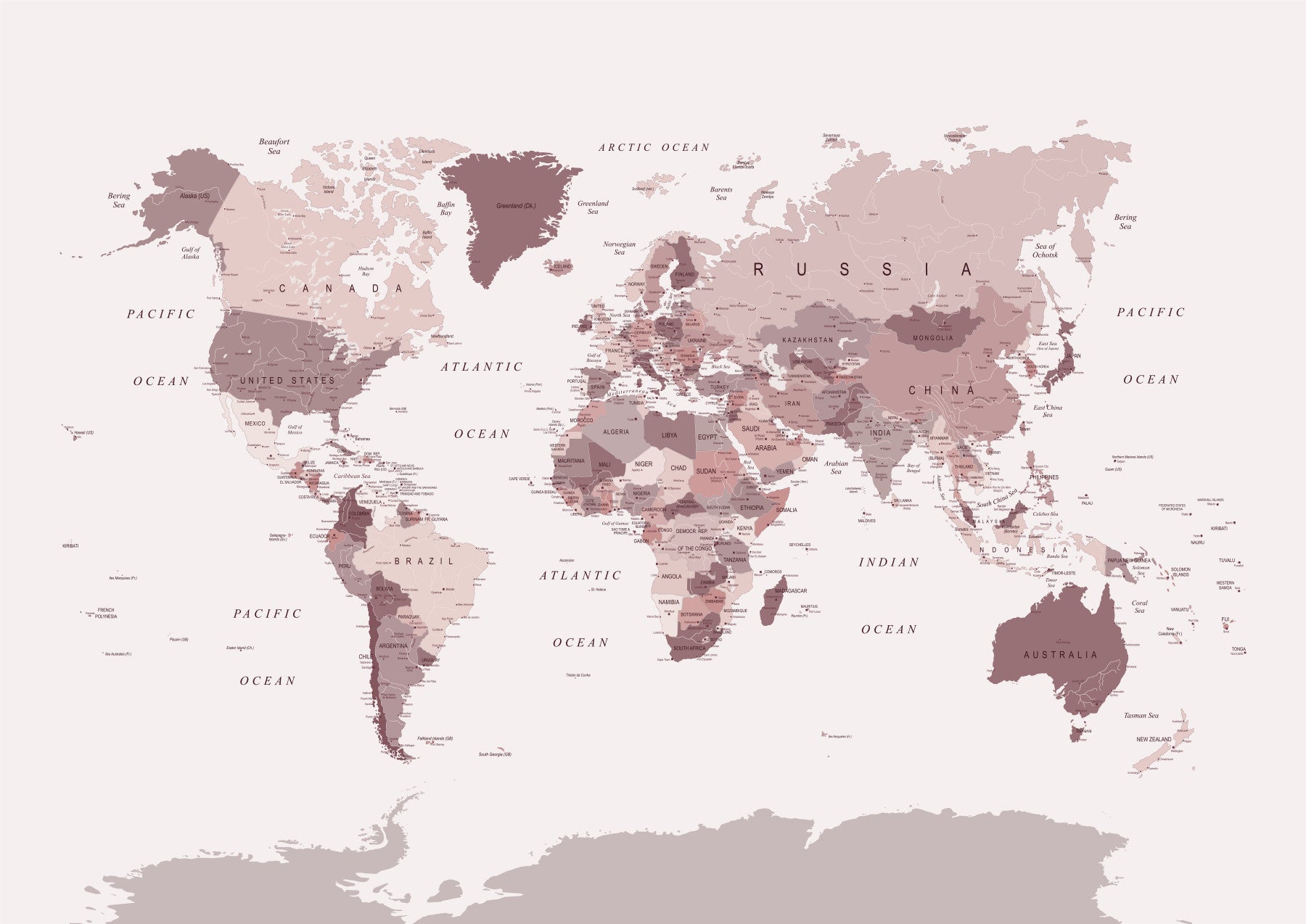 Embark on a visual journey around the globe with the World Map - Blush Pink Cranberry wallpaper. This stunning design marries geographical precision with a modern, feminine aesthetic. Delicate hues of blush pink and deep cranberry intertwine to create a captivating world map, offering a unique blend of sophistication and wanderlust. Perfect for adding a touch of elegance to any space, from living rooms to home offices, this wallpaper transforms walls into a statement piece. Explore the continents, countries, and oceans rendered in beautifully muted tones, sparking curiosity and inspiring dreams of travel. Let this chic world map become a daily reminder of the world's beauty, rendered in a palette that's both stylish and calming. Elevate your décor and showcase your love for exploration with this exquisitely crafted design. It's more than just a map; it's a work of art.