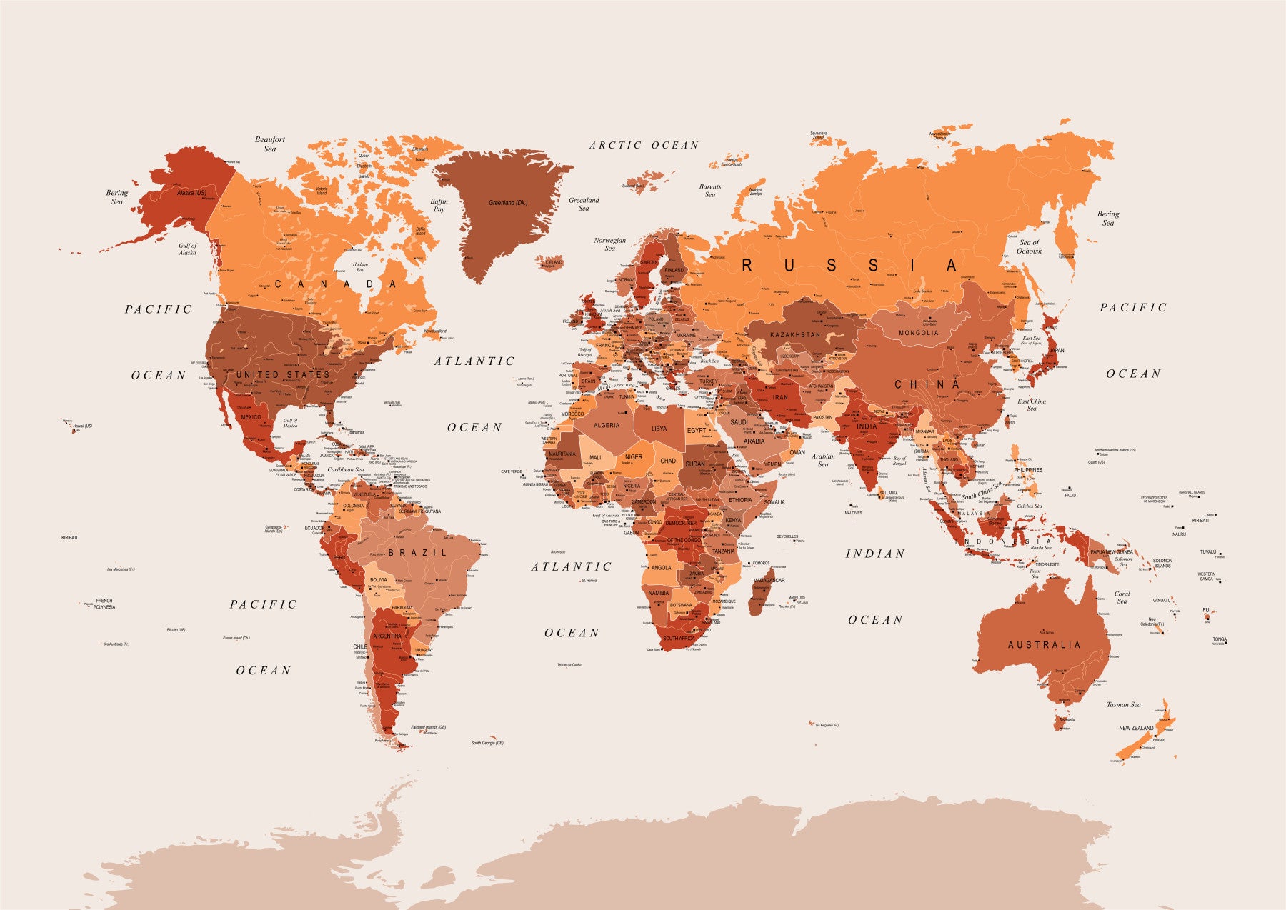Embark on a visual journey across the globe with our World Map Burnt Orange wallpaper. This striking design presents a detailed world map rendered in warm, earthy tones of burnt orange, creating a vintage yet modern aesthetic. The rich hues evoke feelings of exploration, adventure, and the timeless beauty of cartography. The design meticulously details countries, cities, and geographical features, all rendered in varying shades of orange to create depth and visual interest. Perfect for adding a touch of wanderlust and sophistication to any room, this wallpaper is ideal for dreamers, travelers, and anyone who appreciates unique and artistic design. Transform your space into a global haven with the "World Map Burnt Orange" wallpaper, a testament to the beauty of our world and the spirit of discovery.