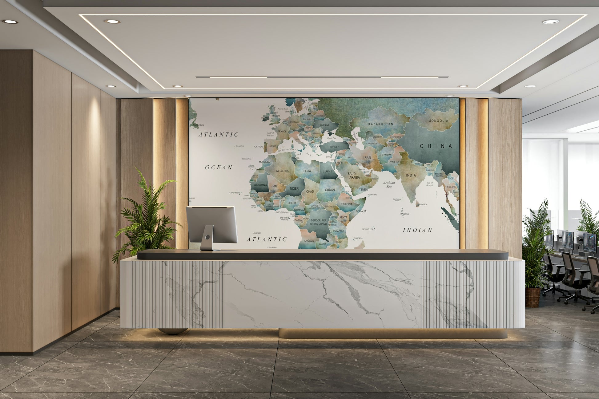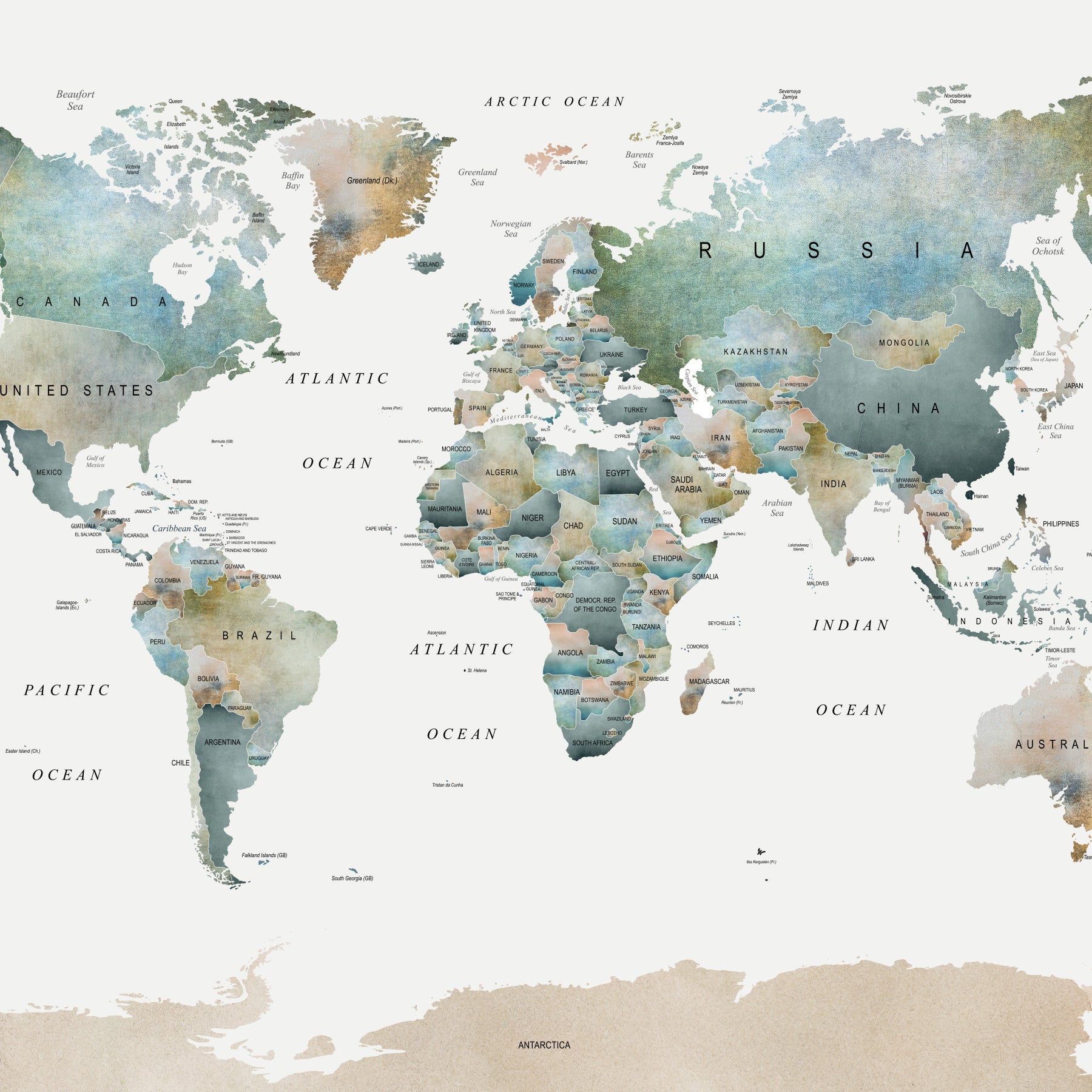 Unveil the beauty of the world right in your own space with this World Map wallpaper. Designed in neutral tones, this educational home decor piece efficiently combines aesthetics with knowledge. An exceptional choice for travel buffs and geography enthusiasts alike, this wallpaper is the perfect blend of design and learning.