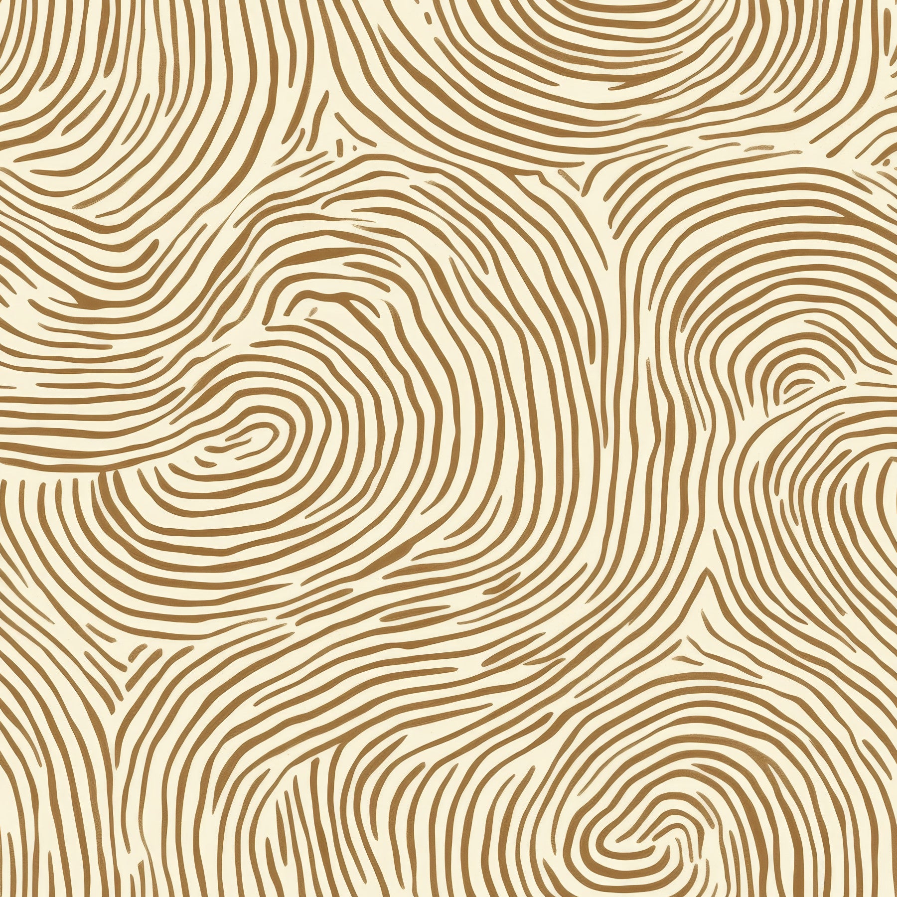 This fascinating pattern draws the viewer into a world of flowing lines reminiscent of human fingerprints. The organic curves look like a topographical map of individuality - each line a symbol of uniqueness, connection and depth. The warm brown tone on a cream background gives the design a natural, earthy feel. This design combines structure with emotion and invites reflection on identity, nature and repetition.