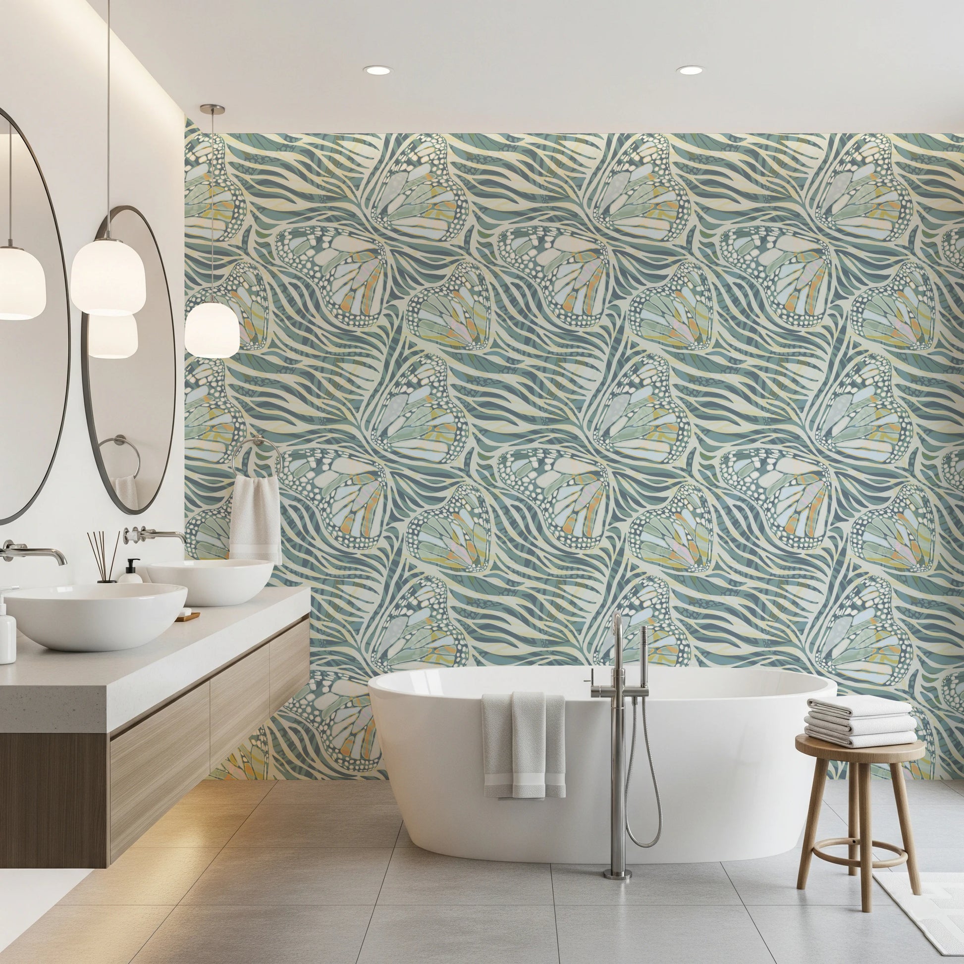 Inspired by nature’s quiet power, this abstract maximalist wallpaper reimagines the zebra print through hidden butterfly wings, creating a striking yet soothing visual rhythm.