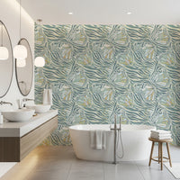 Zebra Butterfly Bloom • Maximalist Boho in Green Pastels Wallpaper⁠