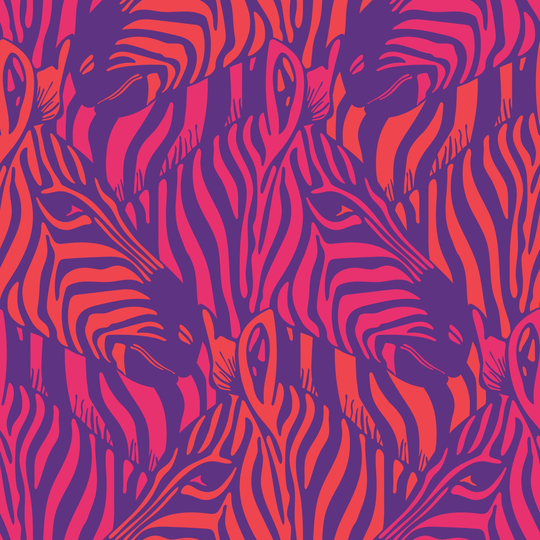 Immerse yourself in the untamed beauty of the African savanna with this captivating vibrant "Zebra Herd" wallpaper that features a mesmerizing pattern of interlocking zebra heads. The striking bright colours of Coral Orange, Fuchsia Pink and Purple create a visually stunning display that manages to be bold, graphic and wild, and disco glamorous at the same time! Perfect for adding a touch of natural sophistication to any space, this modern take on classic zebra stripe designs brings the spirit of the wild into your home. Whether you're a wildlife enthusiast or simply appreciate refined design, this wallpaper will transform your walls into a work of art. This pattern design is also available in Other Colourways too! Original wallpaper pattern design by Jackie Tahara of UnBlink Studio.