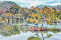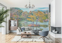 Transform your walls with this serene landscape depicting a tranquil zen garden scene. The design features a mirrored lake, vibrant trees with gold leaves, and soft, muted colours that bring a sense of calm into any room. The reflections create depth and dimension, making it ideal for creating a restful atmosphere in bedrooms, living rooms, or even hallways. This landscape wallpaper for walls adds a touch of nature and peacefulness, enhancing your living space with its subtle, refined beauty. The soft hues complement various interior styles, from modern minimalist to classic decor.