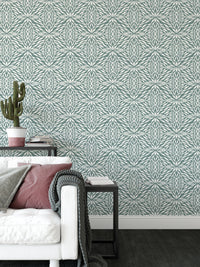 Experience the serene beauty of Zenith Leaves Wallpaper, a design that exudes tranquility and brings nature indoors. This botanical wallpaper features a captivating pattern of stylized leaves, rendered in soft sage green and crisp white, creating a calming visual rhythm. The seamless repetition of the leaf motifs generates a sense of effortless balance and harmony, perfect for a feature wall in a living room, bedroom, or reading nook. Its understated elegance lends itself equally well to modern minimalist spaces as it does to more traditional settings, offering a versatile and stylish update to your home decor.